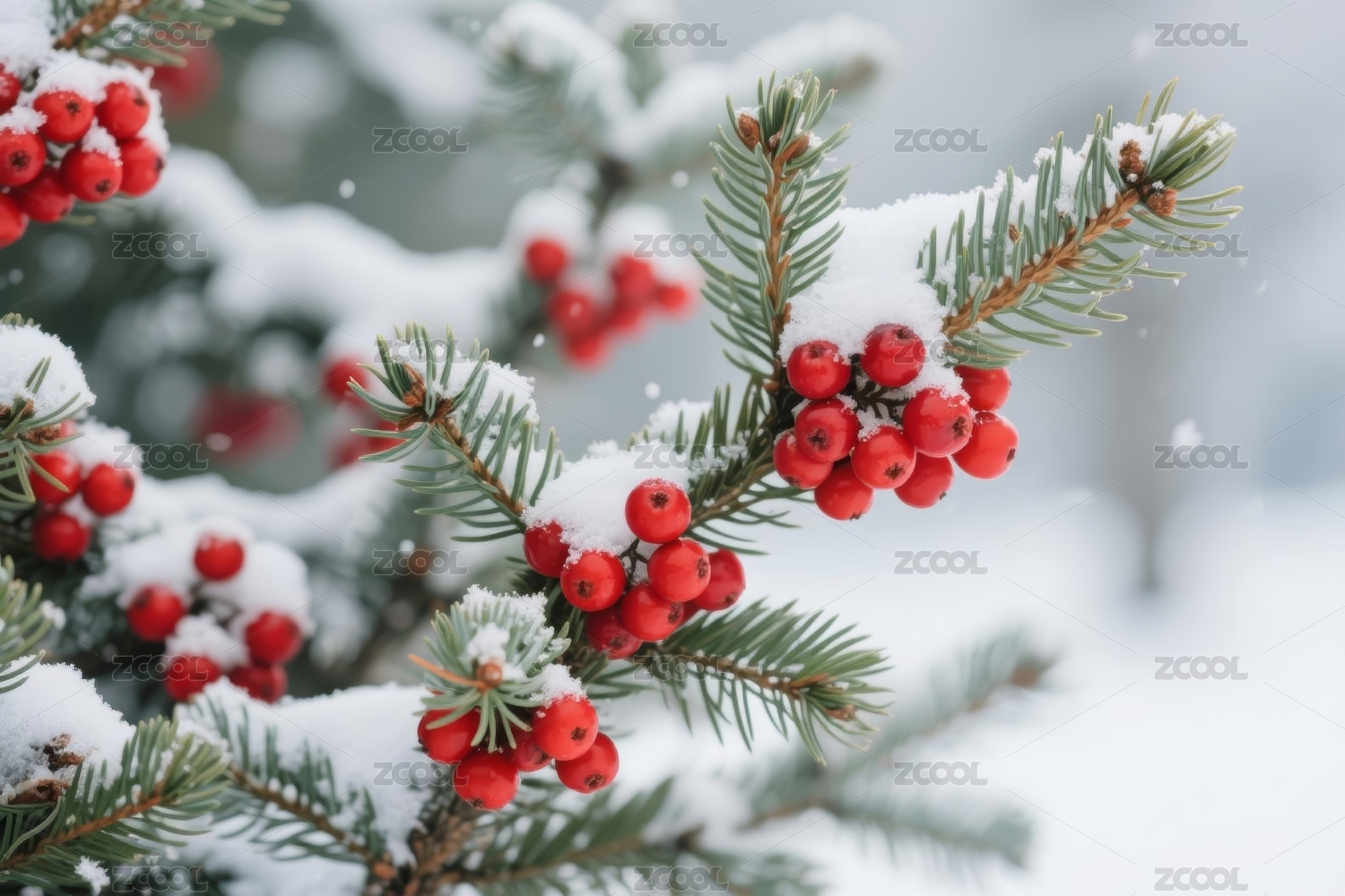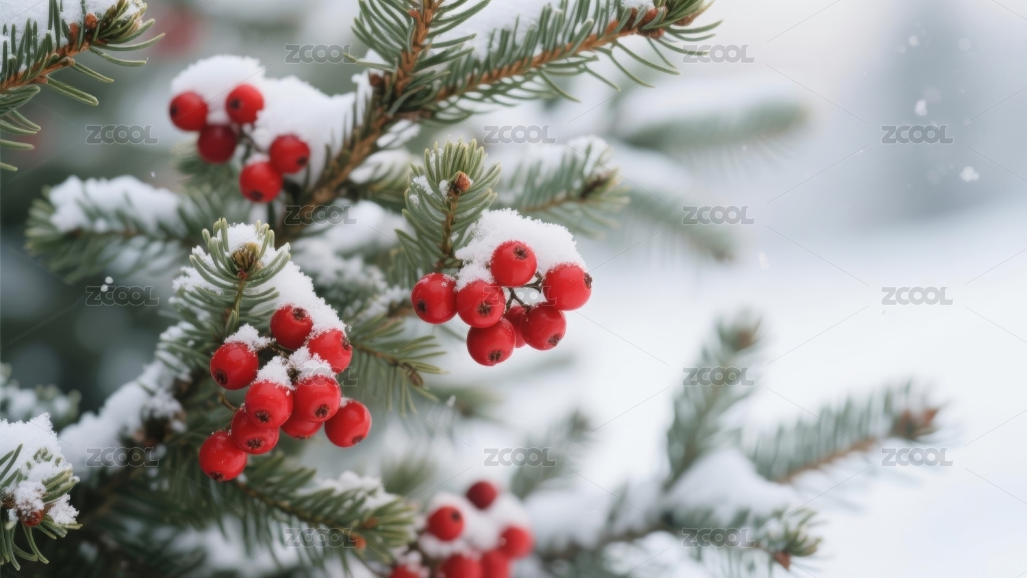 冬季室外红珊瑚节日气氛冰冻果实背景壁纸