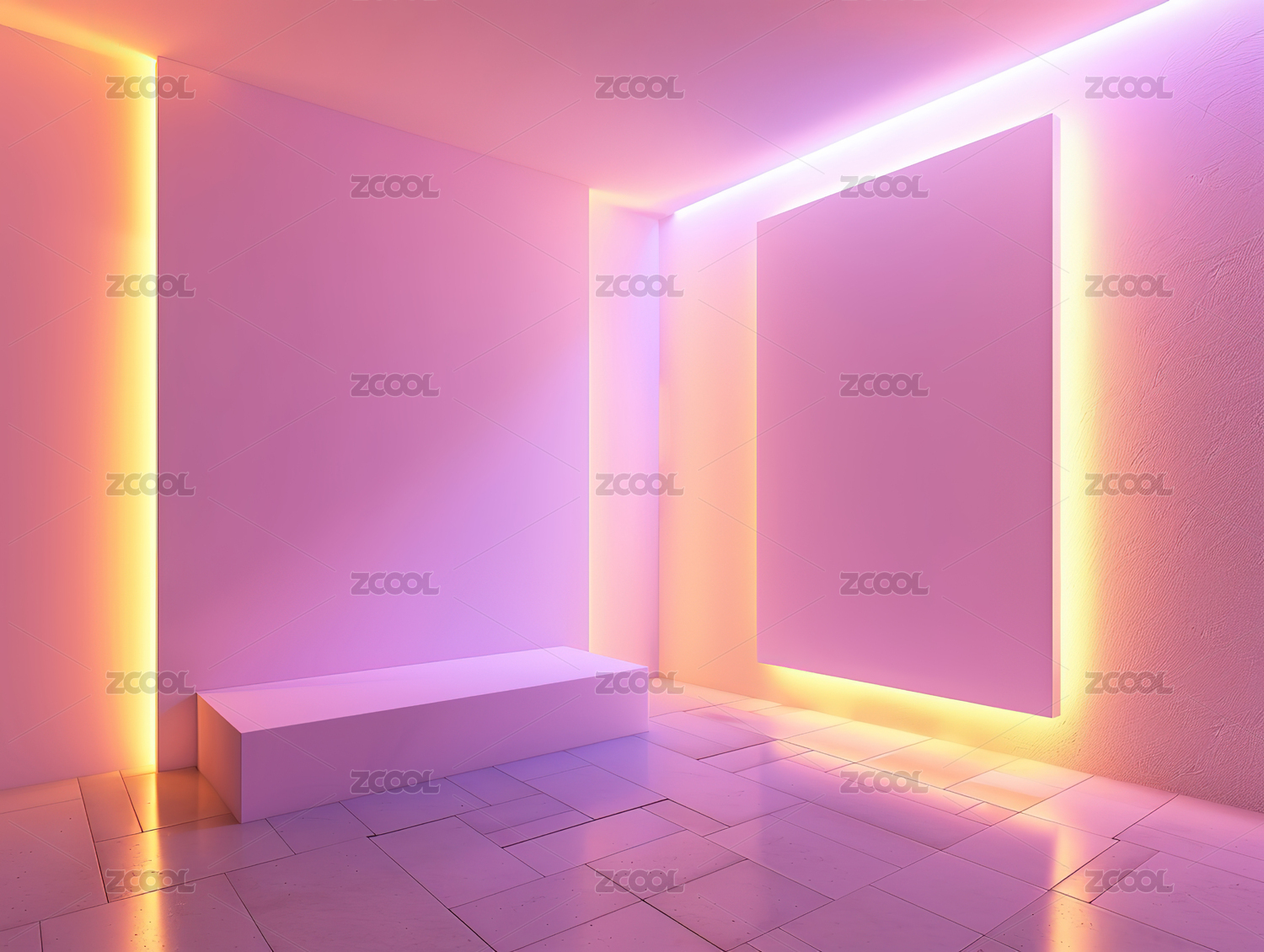 厨房,极简,室内,设计,粉色,霓虹灯,现代,家居,灯光,未来感