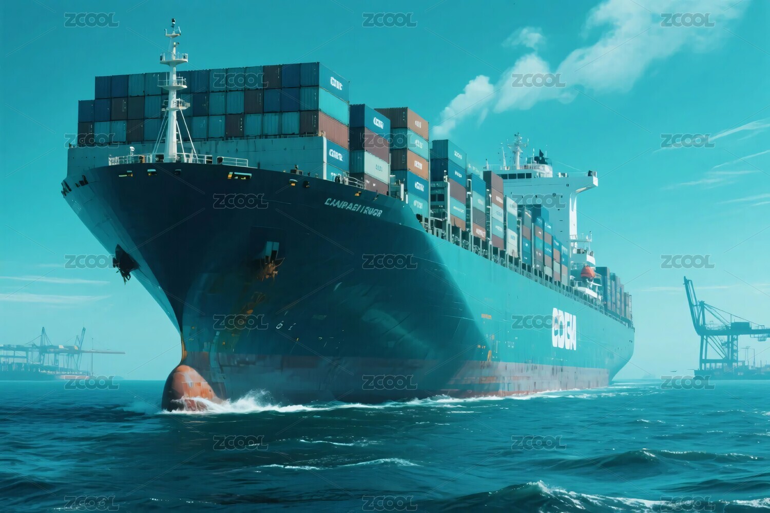 满载彩色集装箱货轮航行于蔚蓝海洋