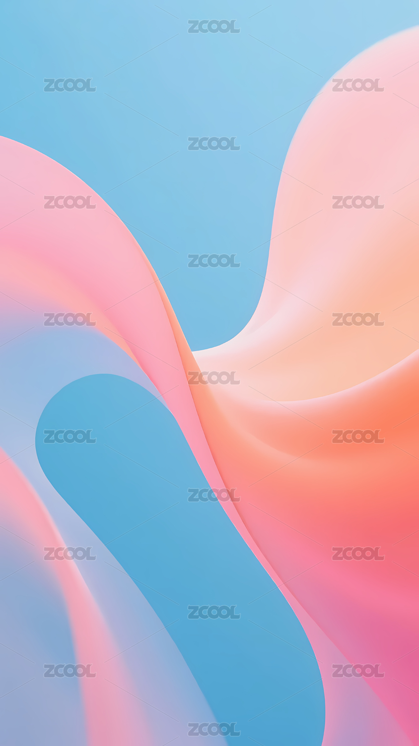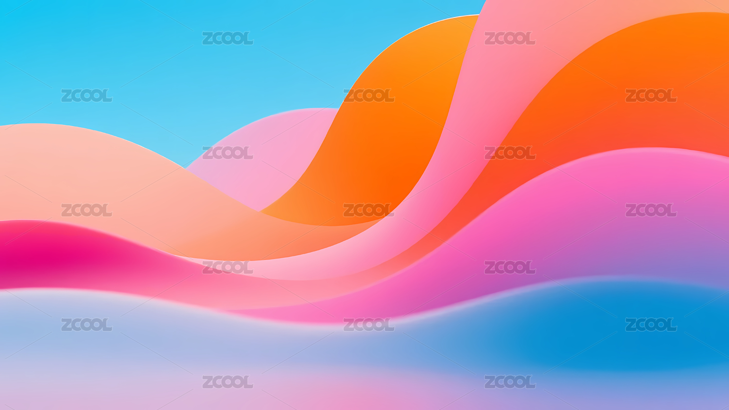粉橙紫渐变波浪曲线与浅蓝色背景