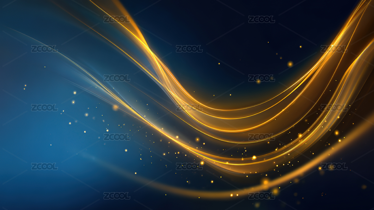 蓝色,背景,曲线,视觉,金色,深色,光点,流动,装饰,点缀