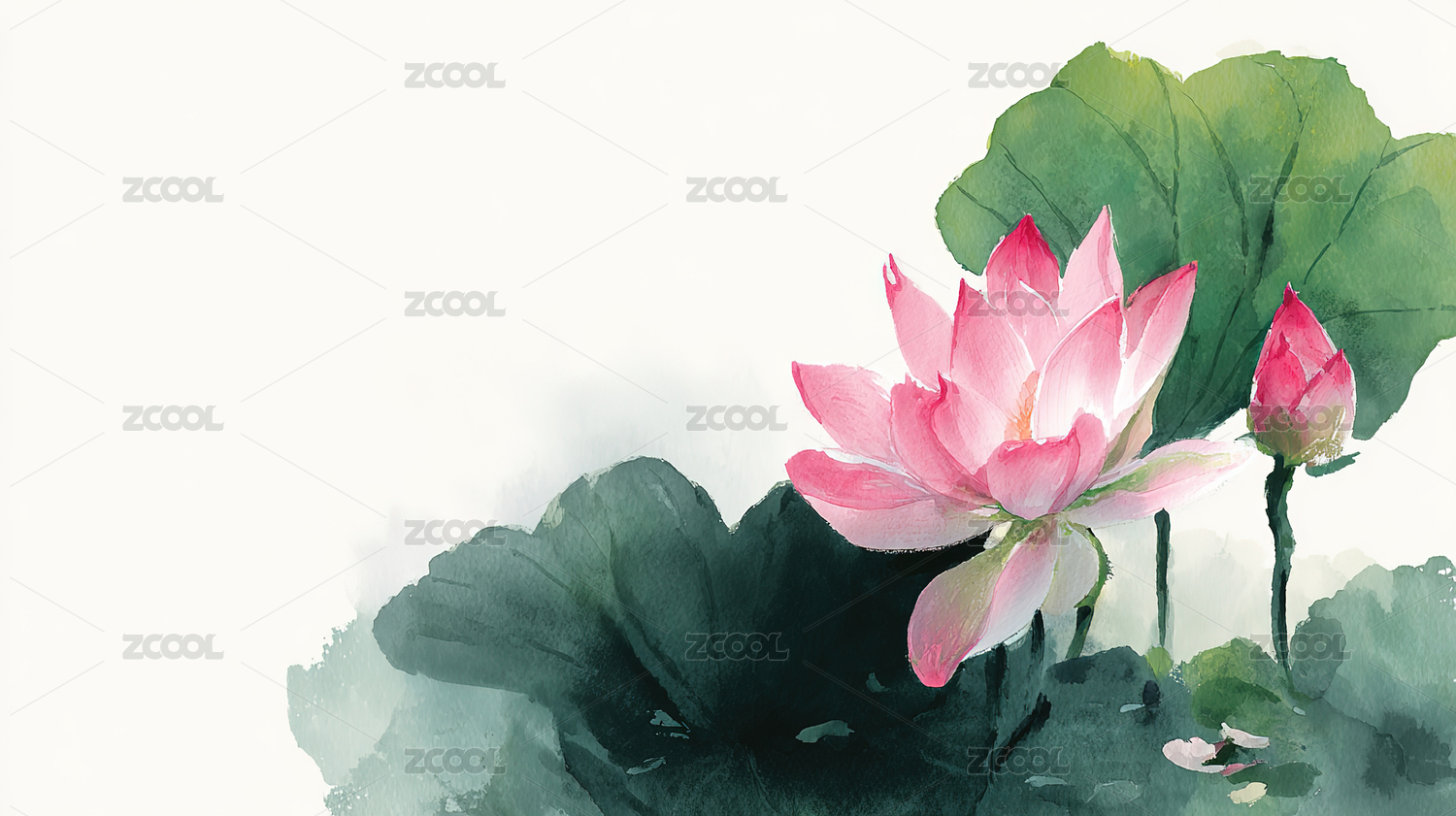 荷花,花卉,莲花,水墨风,淡雅,粉色,花瓣,花苞,清新,唯美