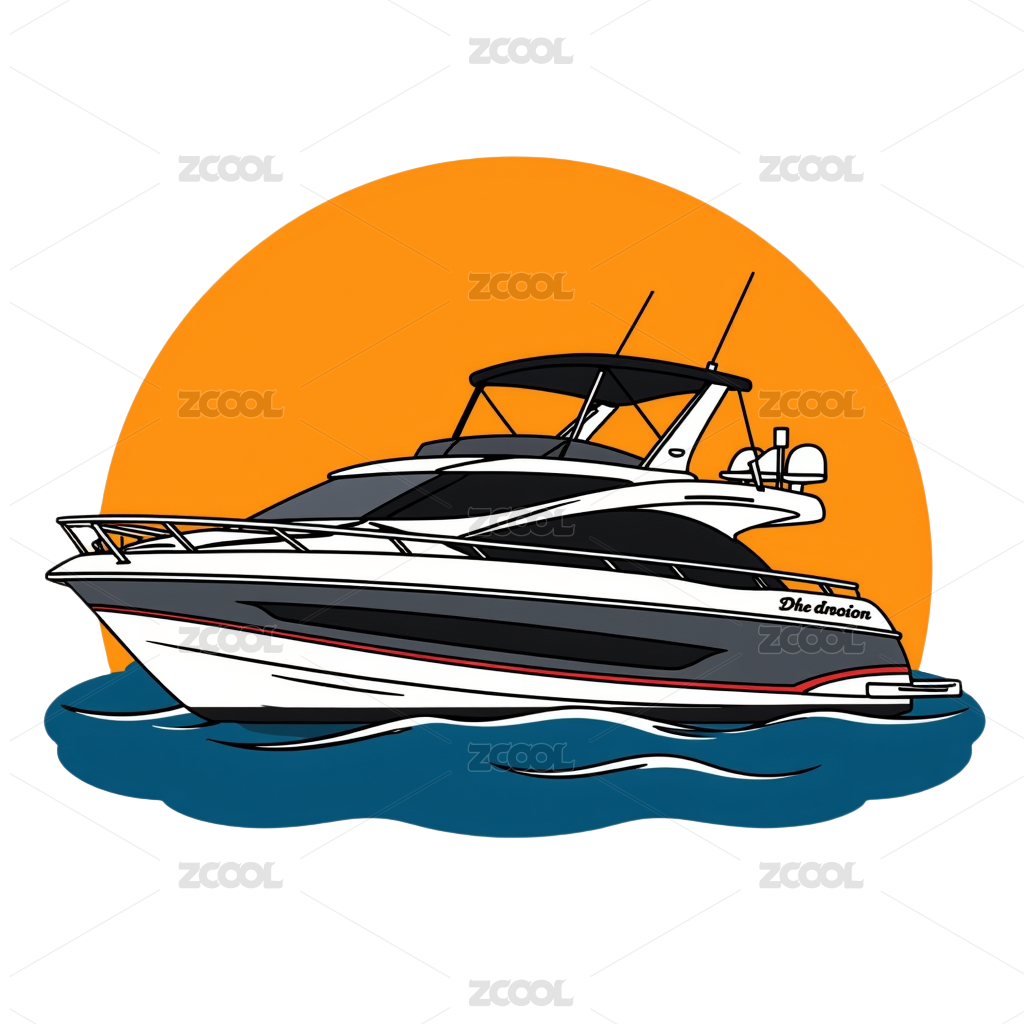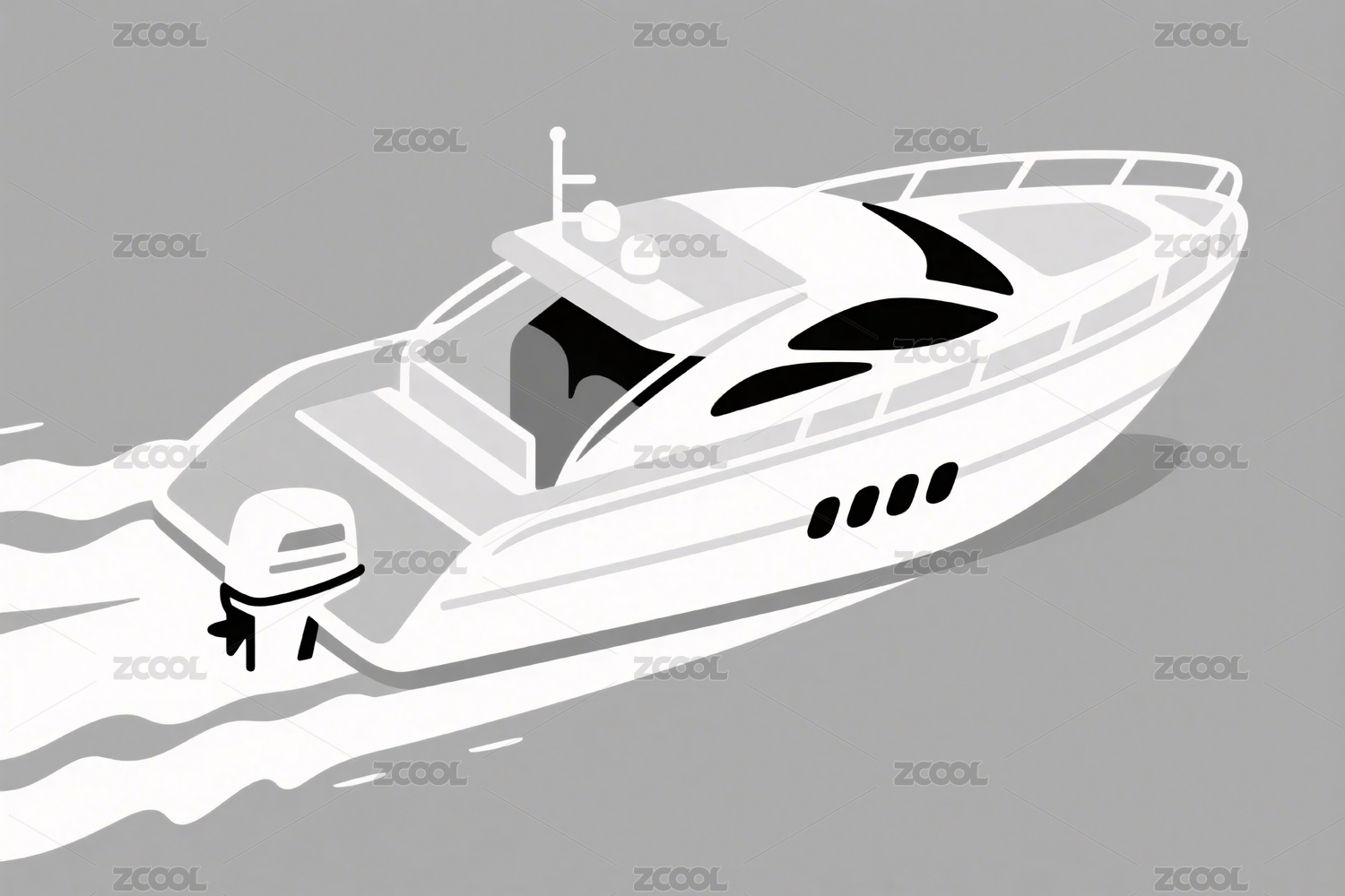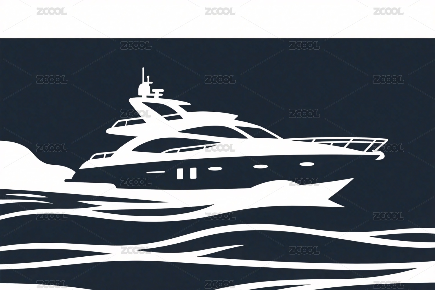 游艇,海洋,波浪,航行,船只,白色,黑色背景,插画,简洁,轮廓