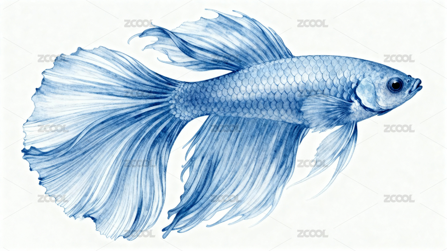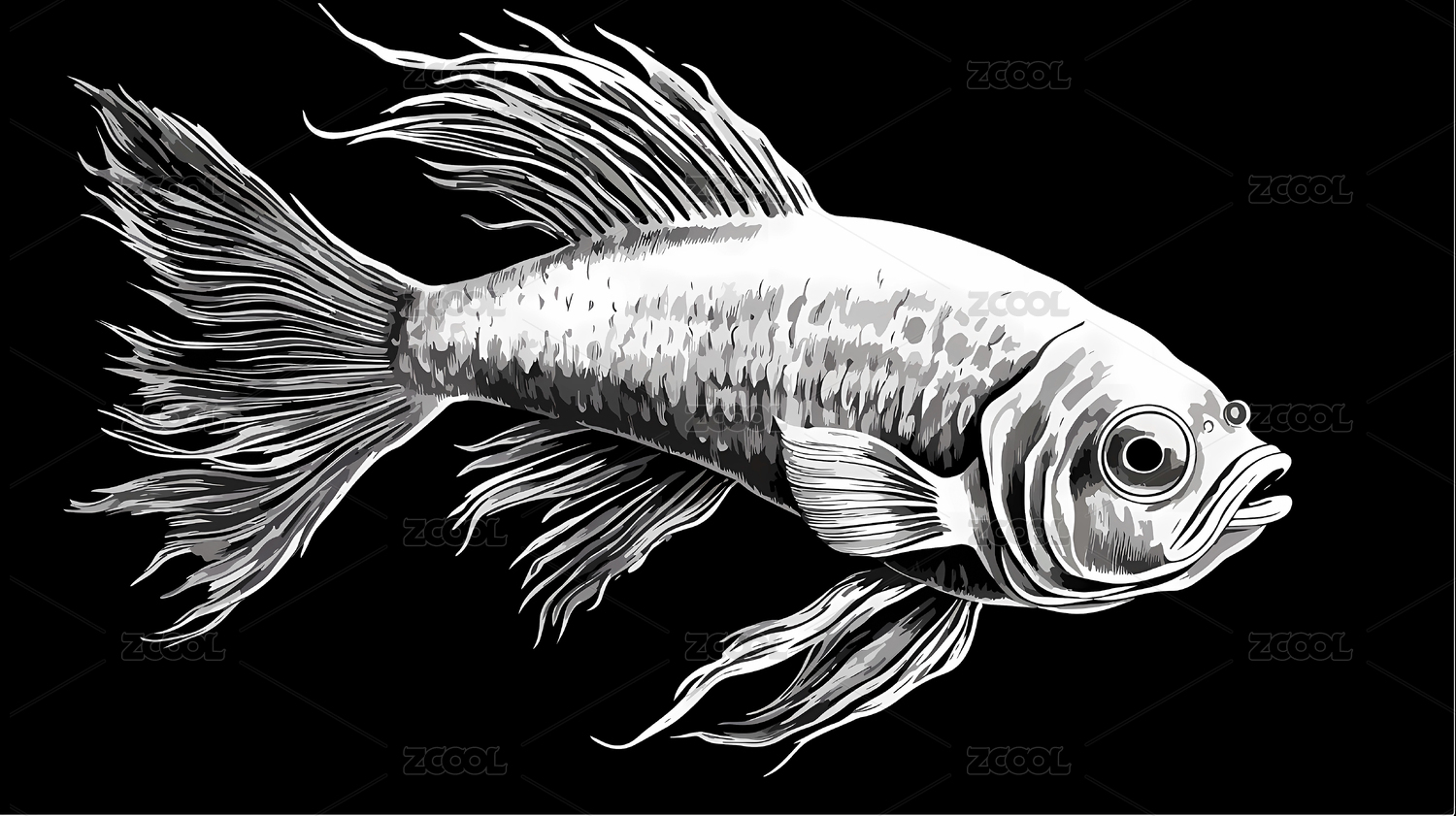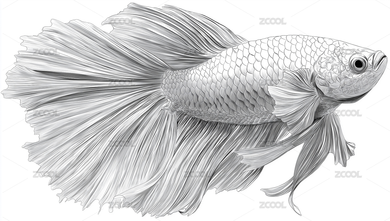 斗鱼,插画,黑白,线条,写实,图案,艺术,绘画,鱼类,生物
