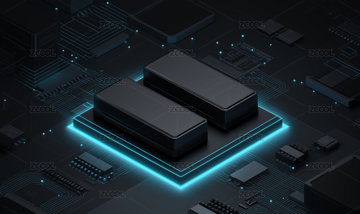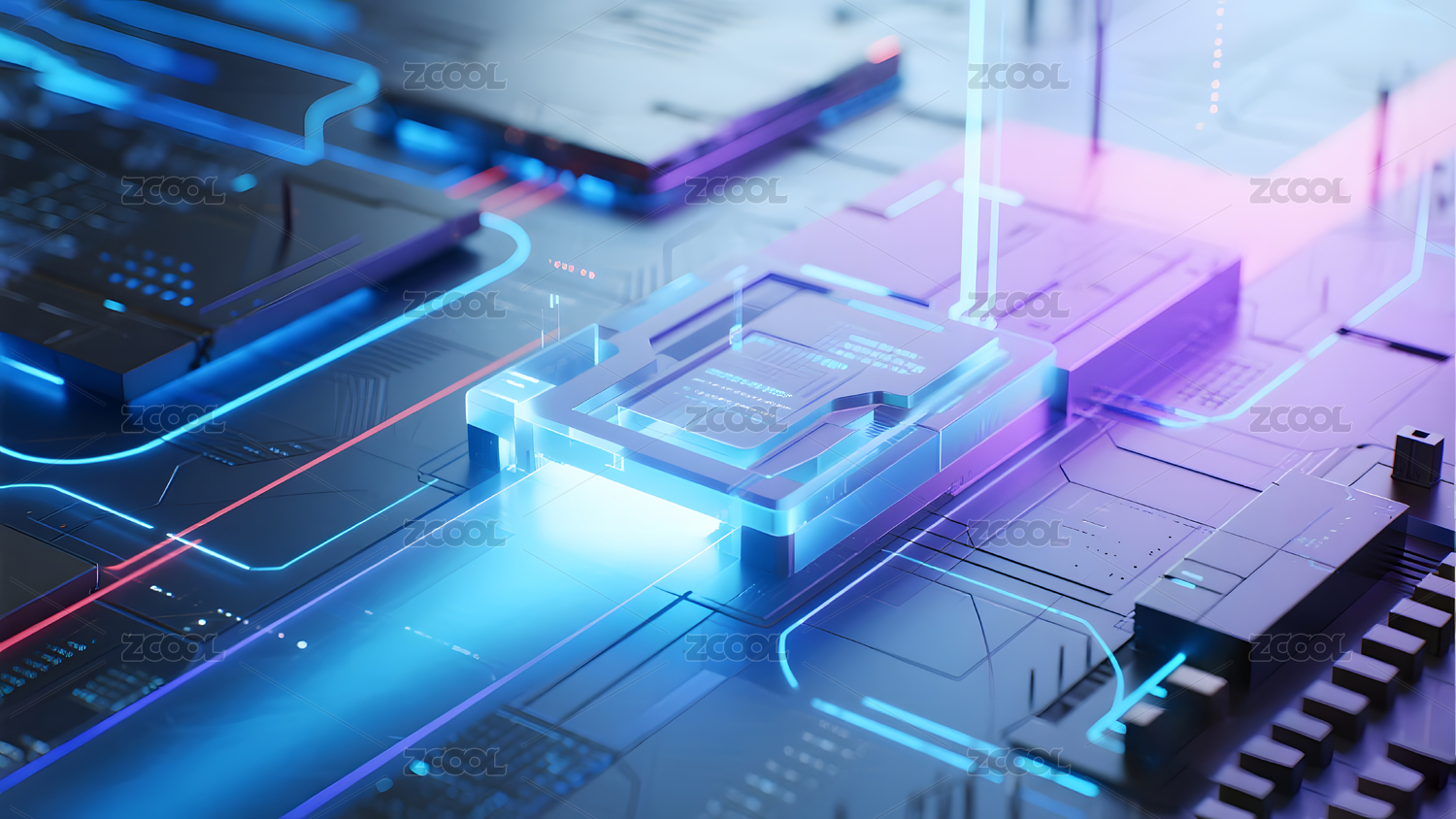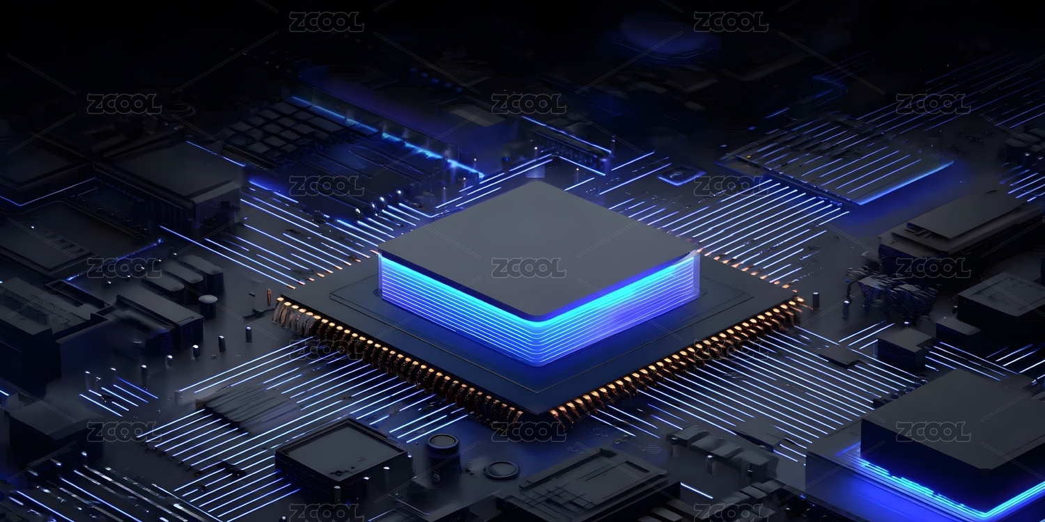 蓝色科技芯片电路板高清渲染图