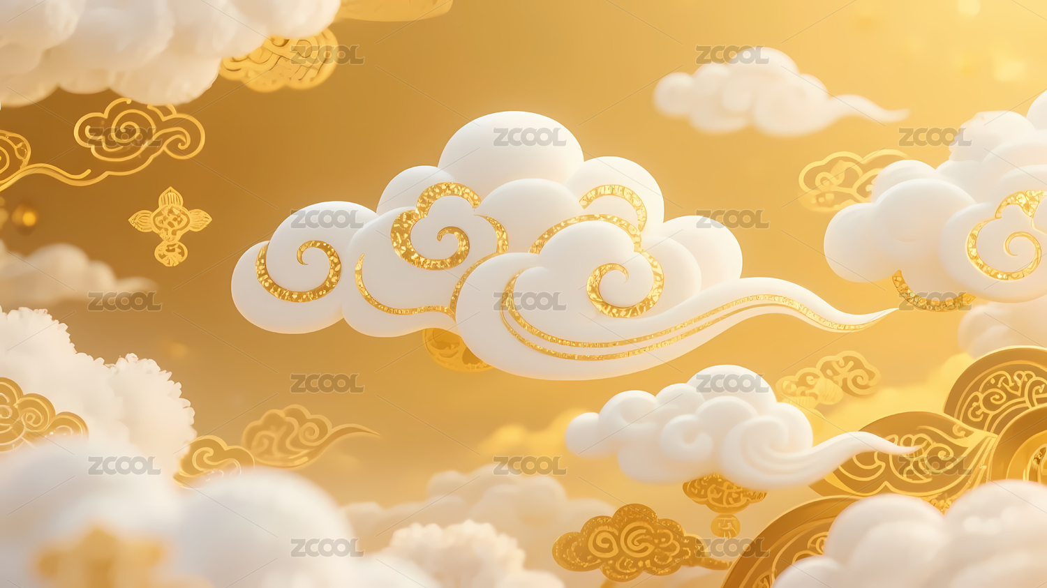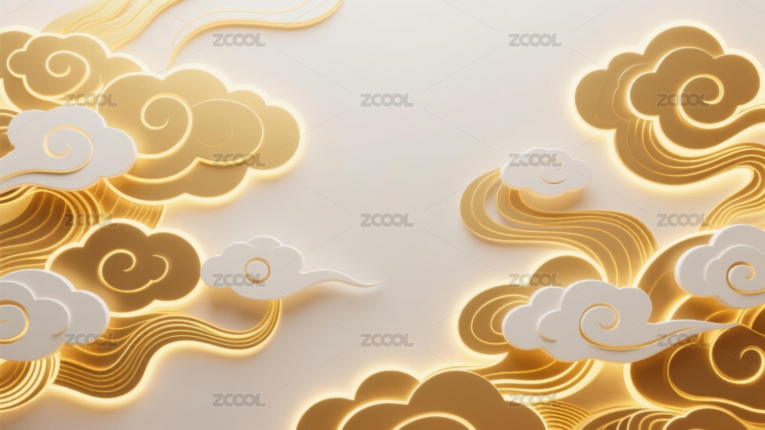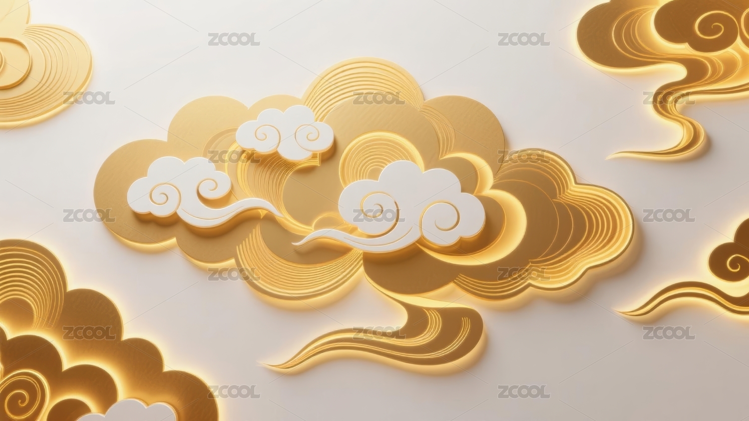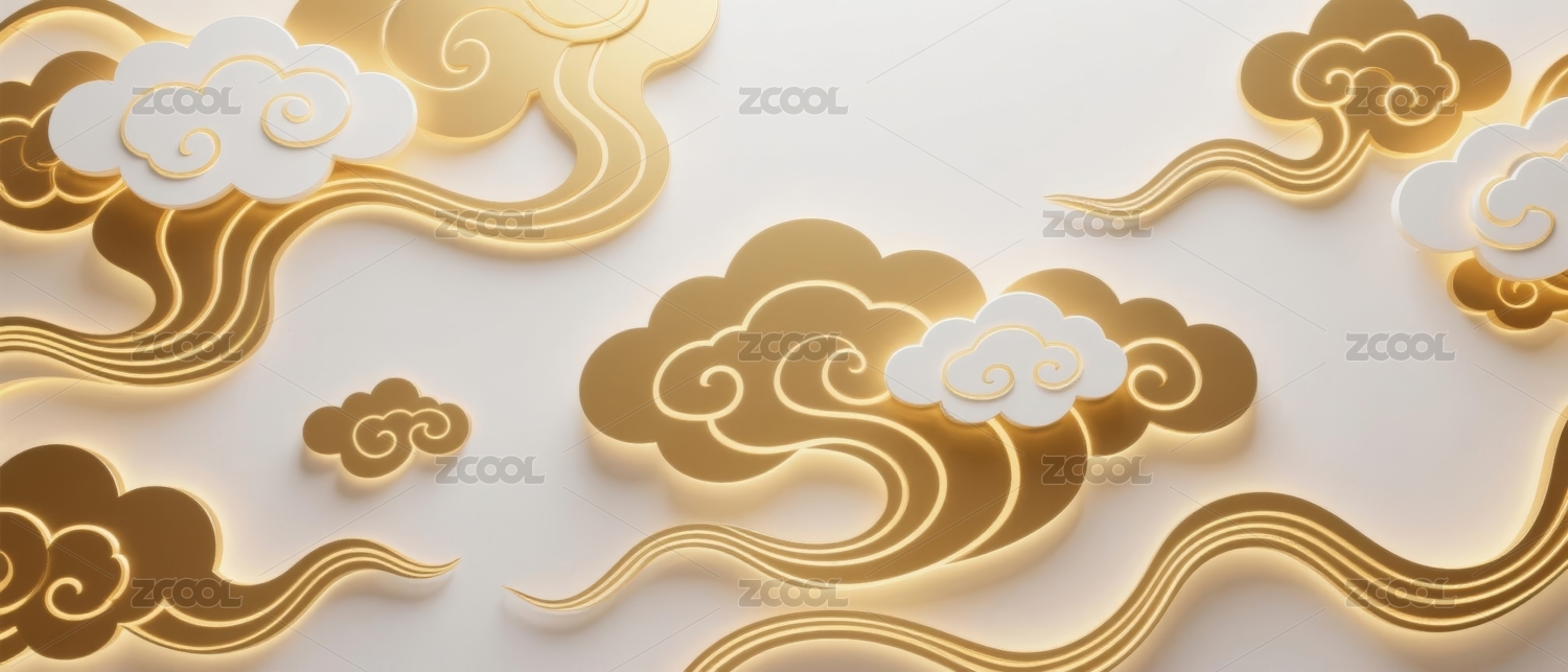 主视觉,金云,云纹,国潮感,装饰,场景,金色,白色,祥云,中式