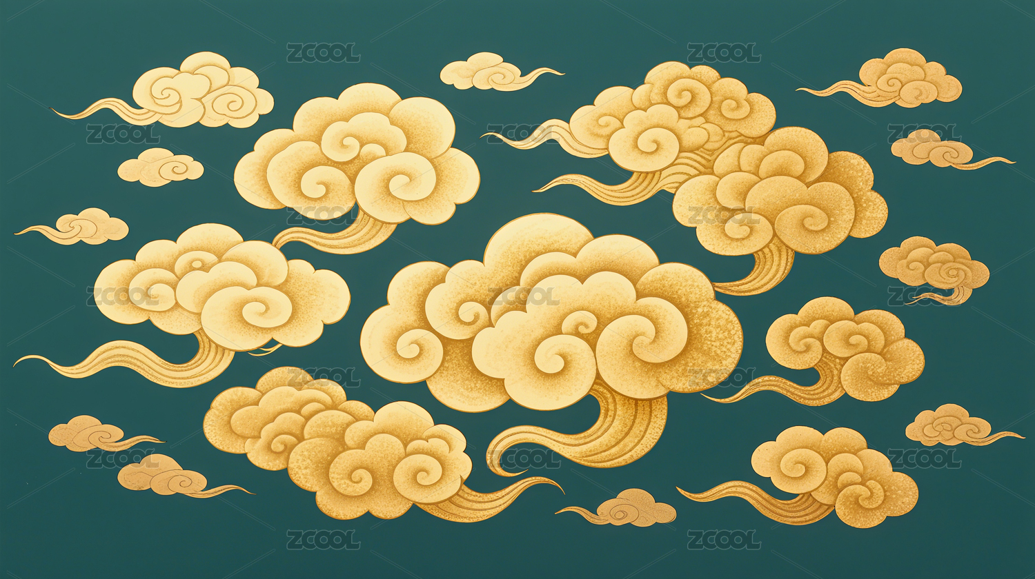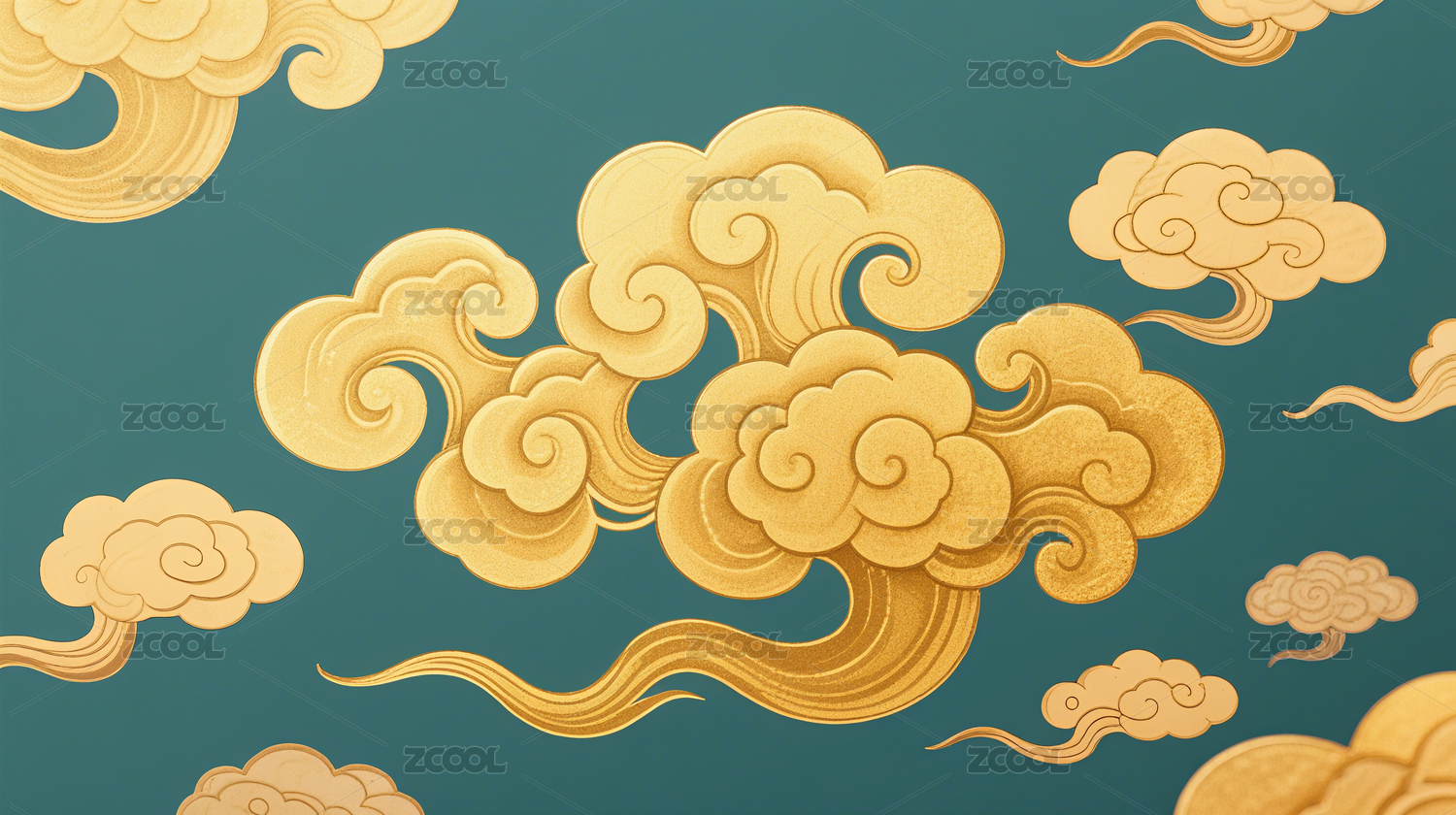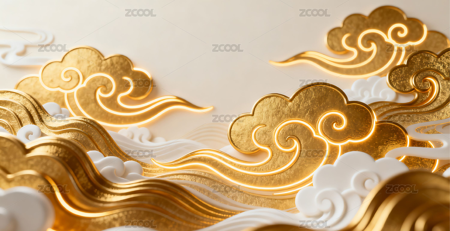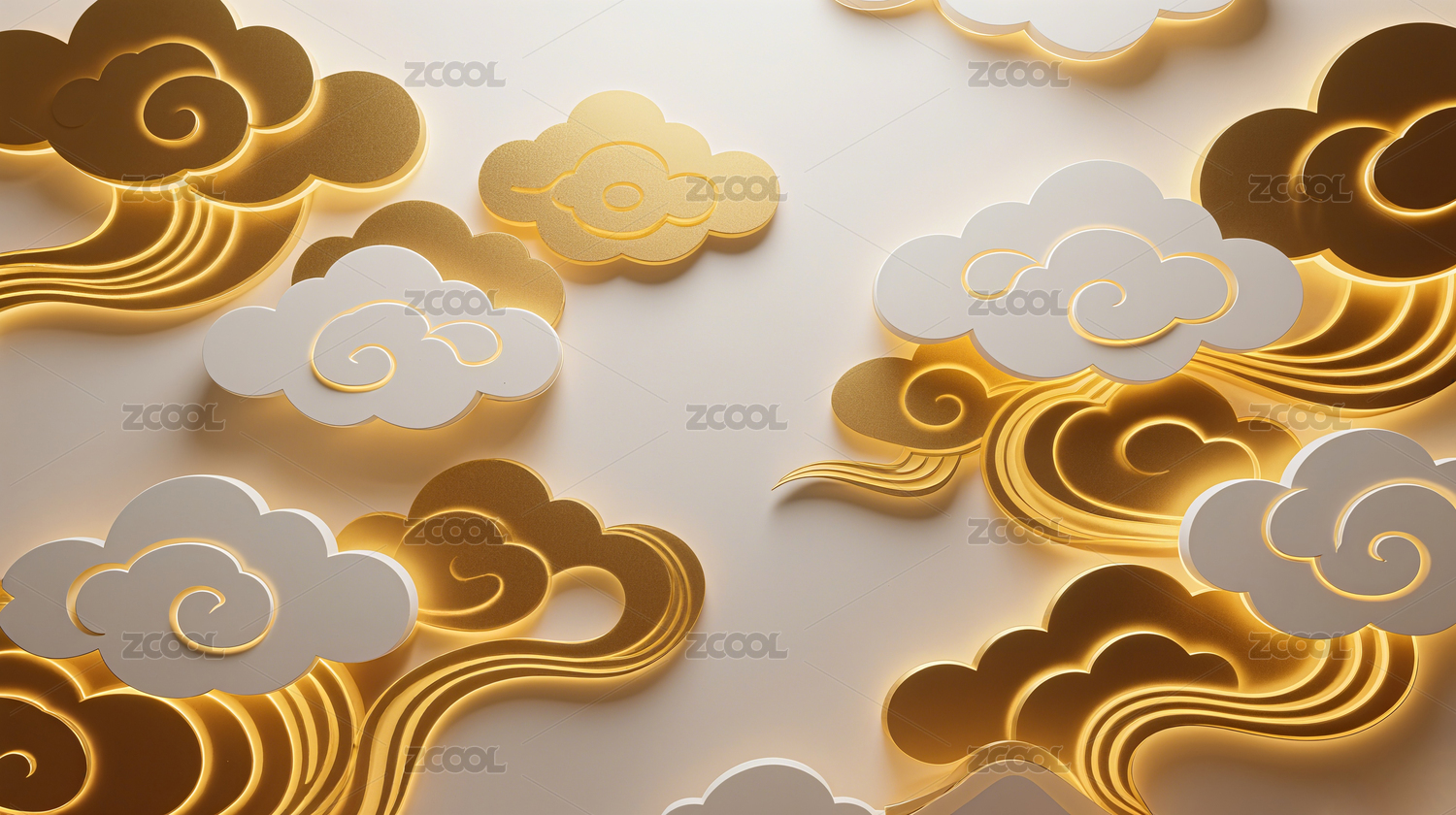 主视觉,金云,云纹,国潮感,装饰,场景,金色,白色,祥云,中式