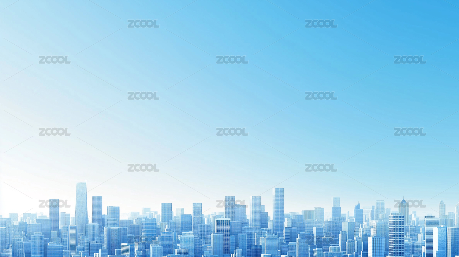 蓝色渐变下的城市天际线