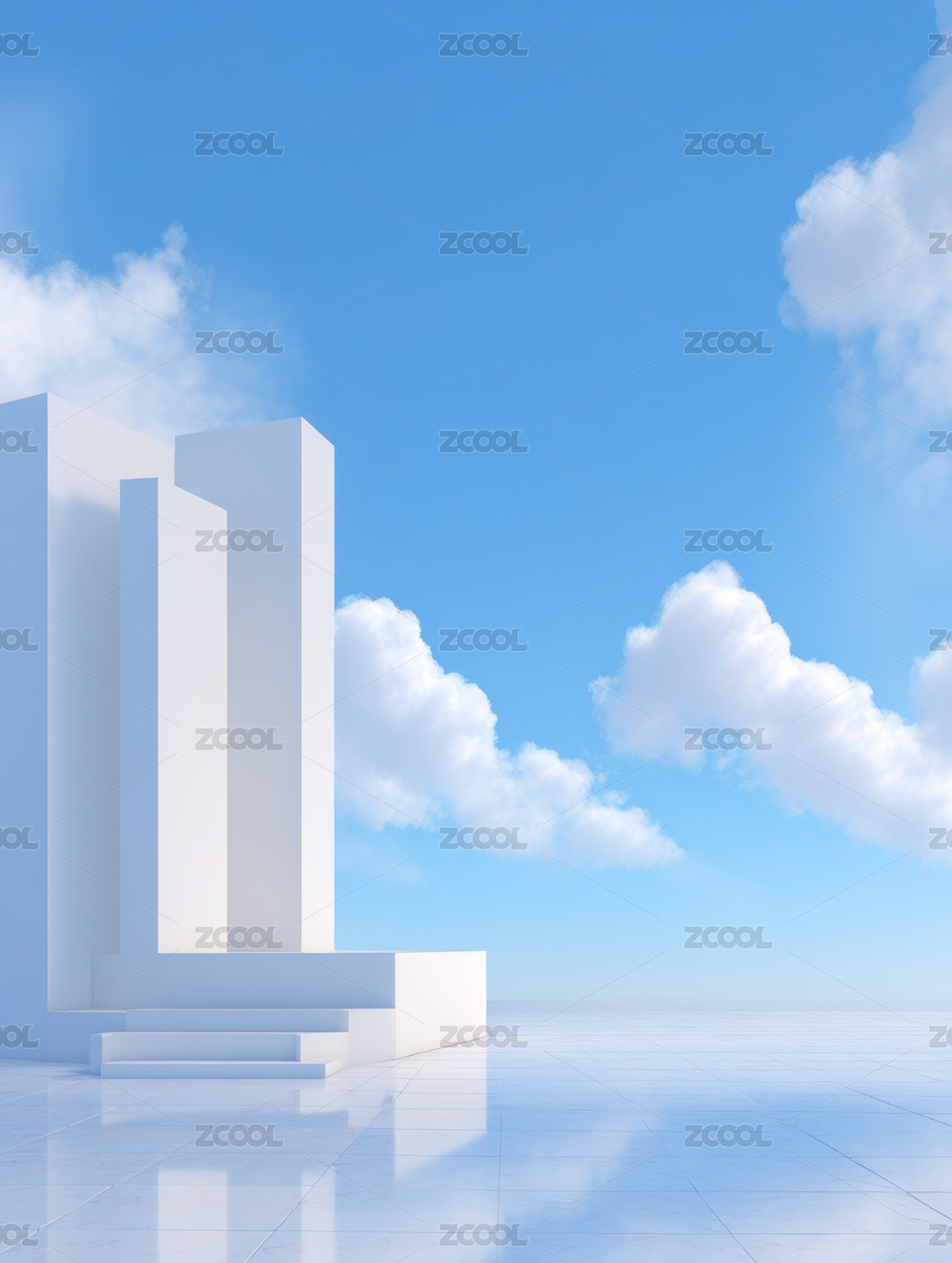 蓝天,白云,建筑,现代,简洁,几何,光影,户外,天空