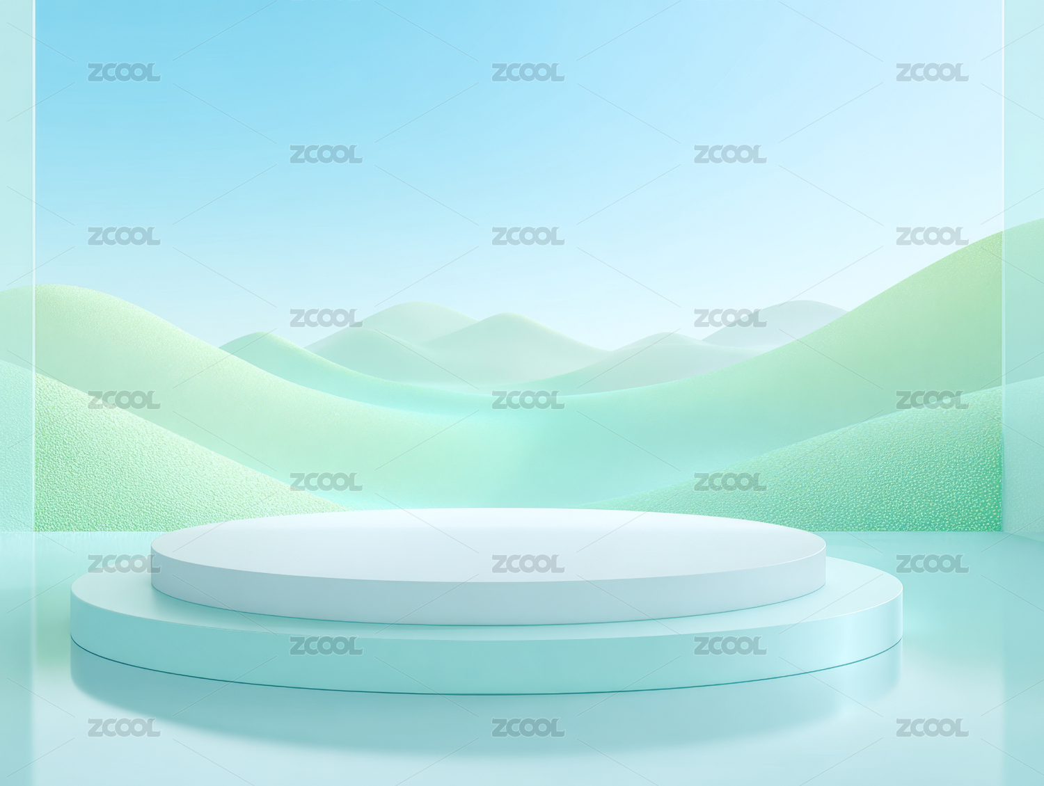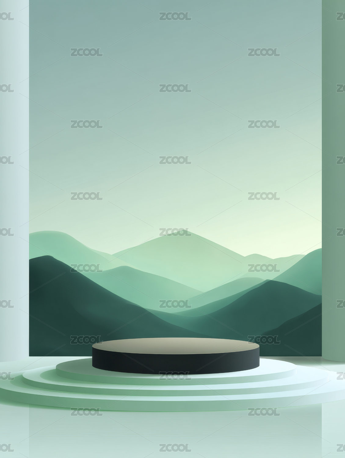 山景,展示台,圆形,绿色,简约,室内,背景,几何