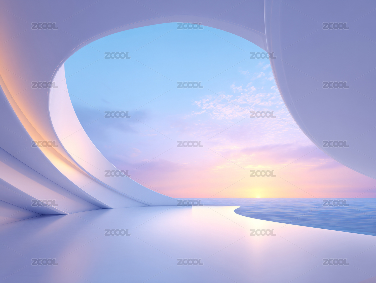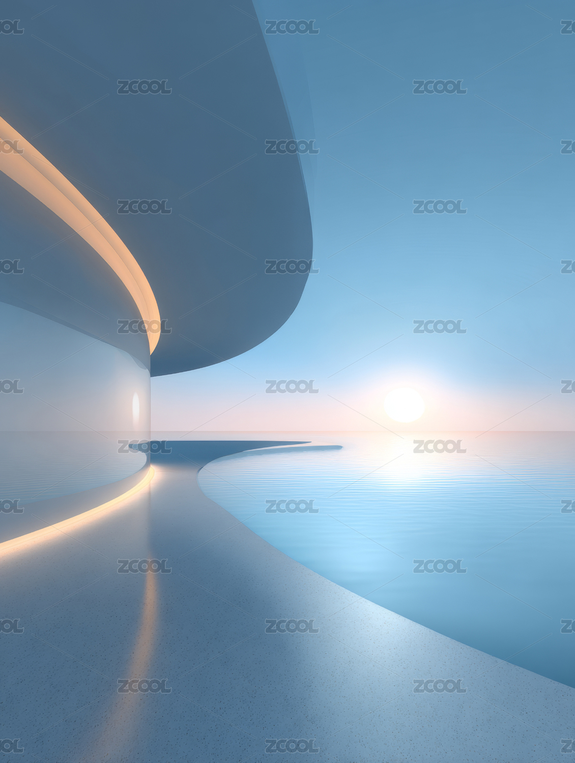 建筑,海边,日落,现代,曲线,天空,沙滩,平台,自然,宁静