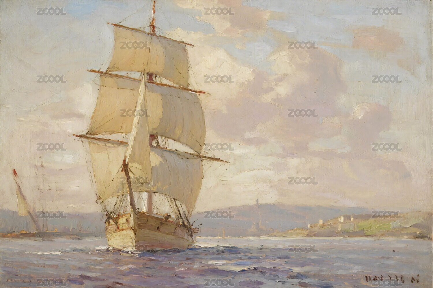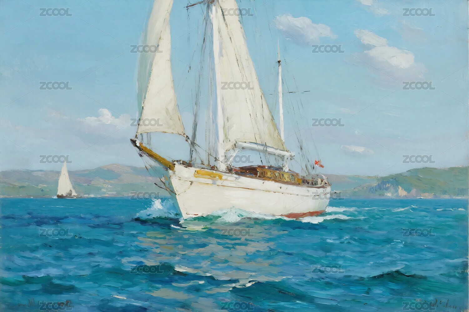 帆船海面油画