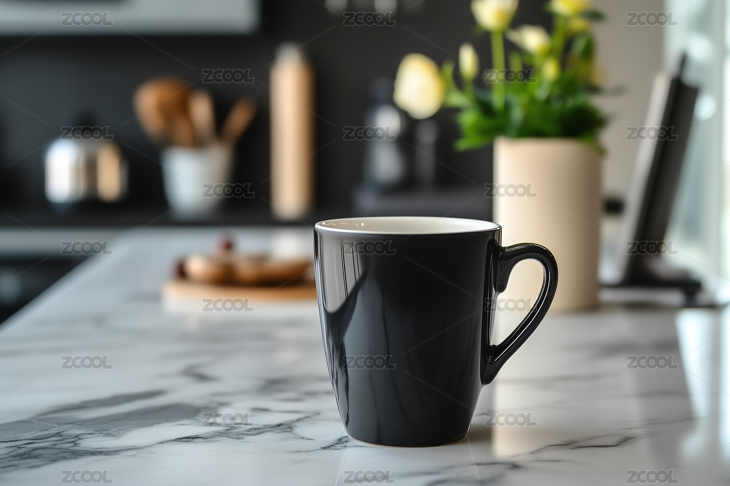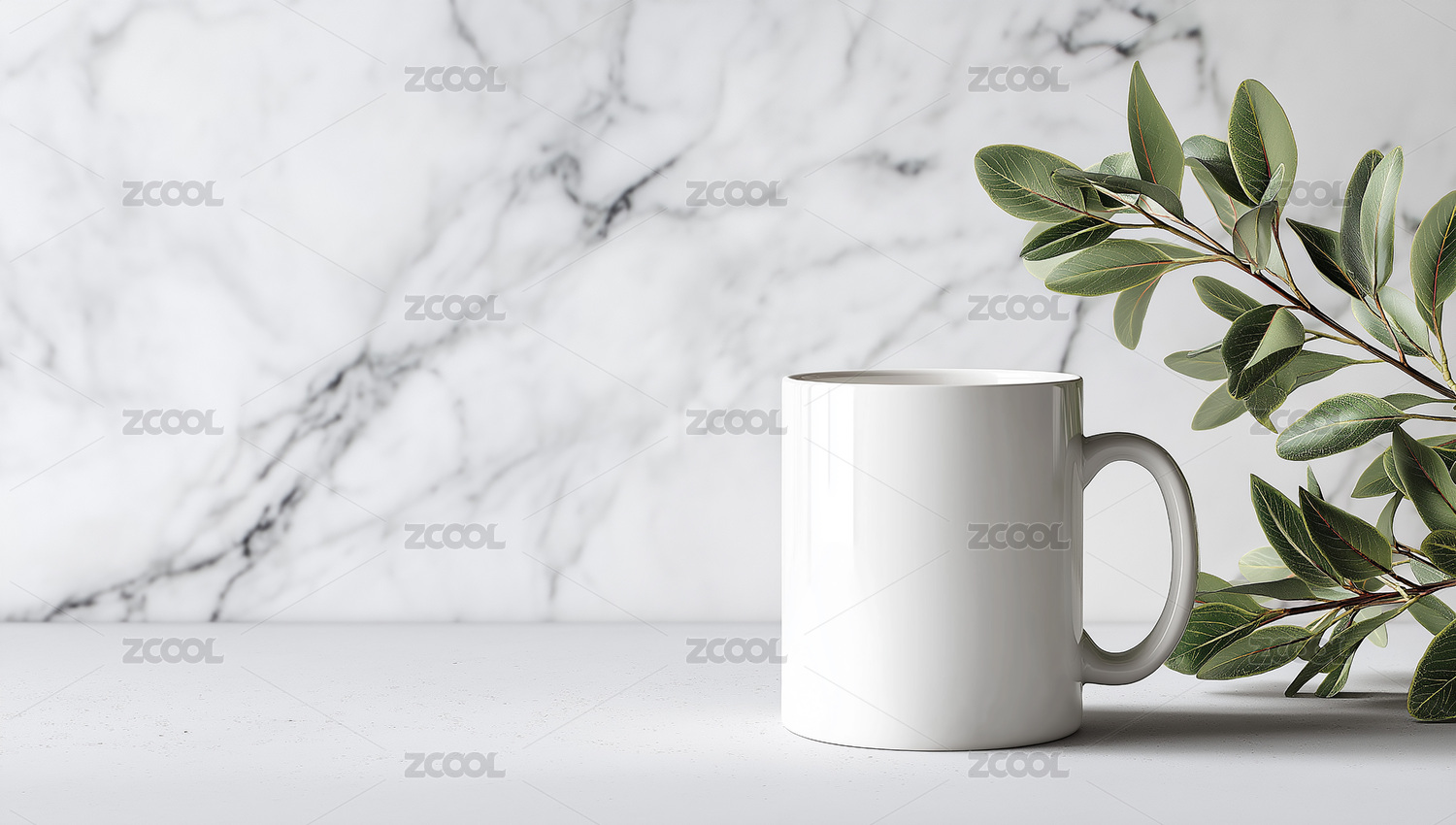 马克杯,白色,大理石,背景,绿植,静物,场景,简约,清新,家居