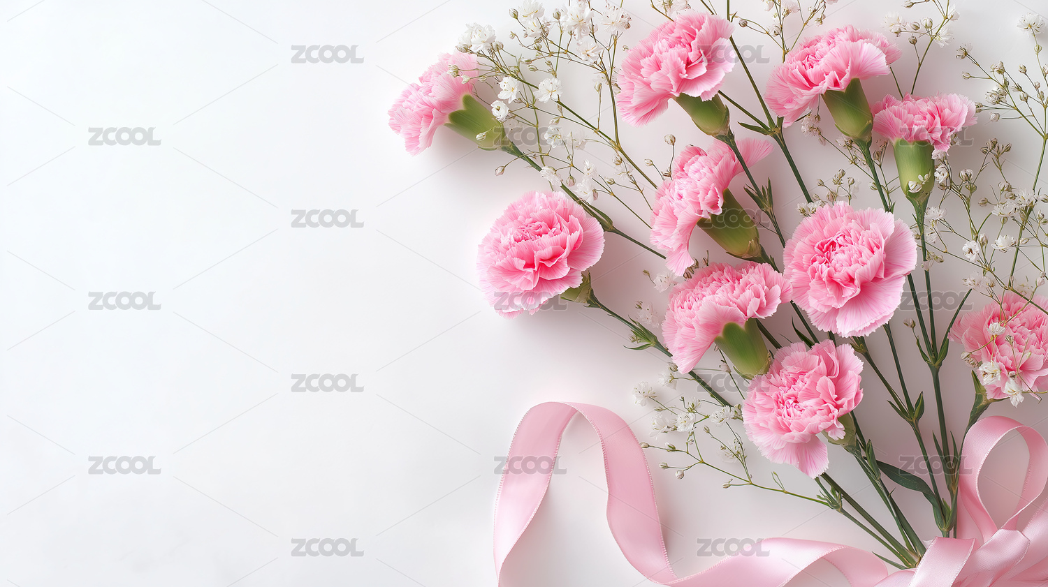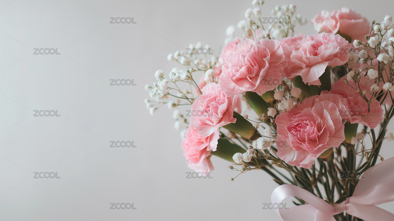 花束,康乃馨,粉色,满天星,浅背景,静物,场景,温馨,治愈,节日
