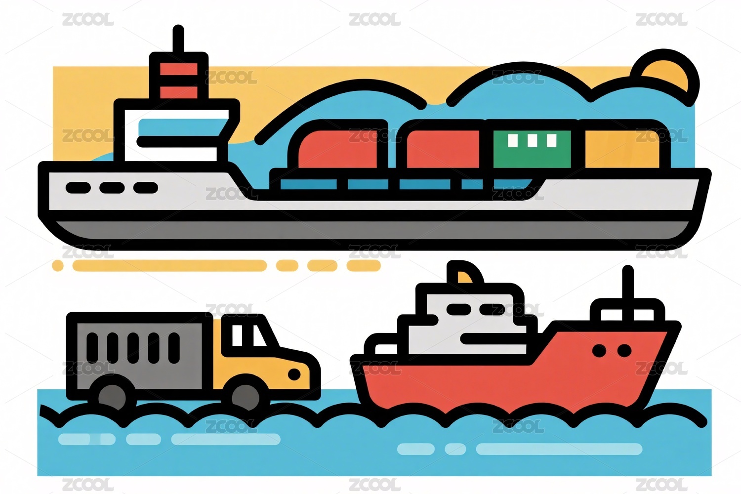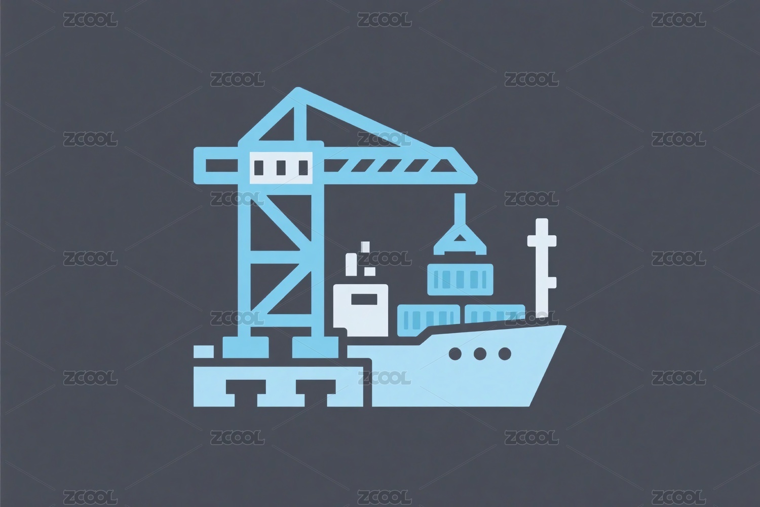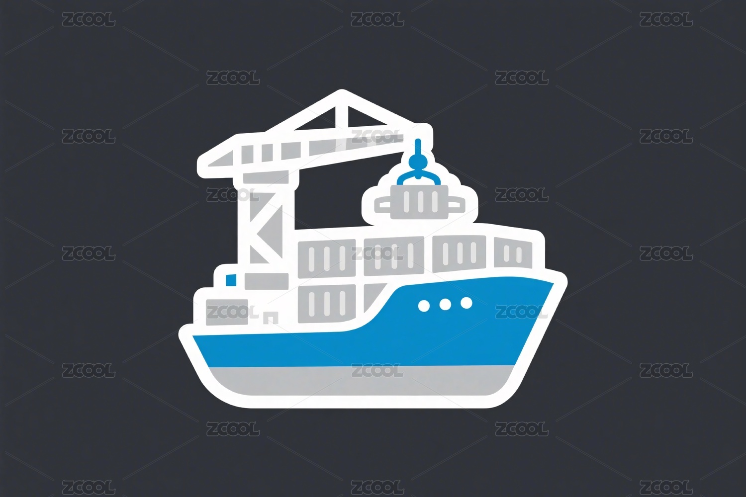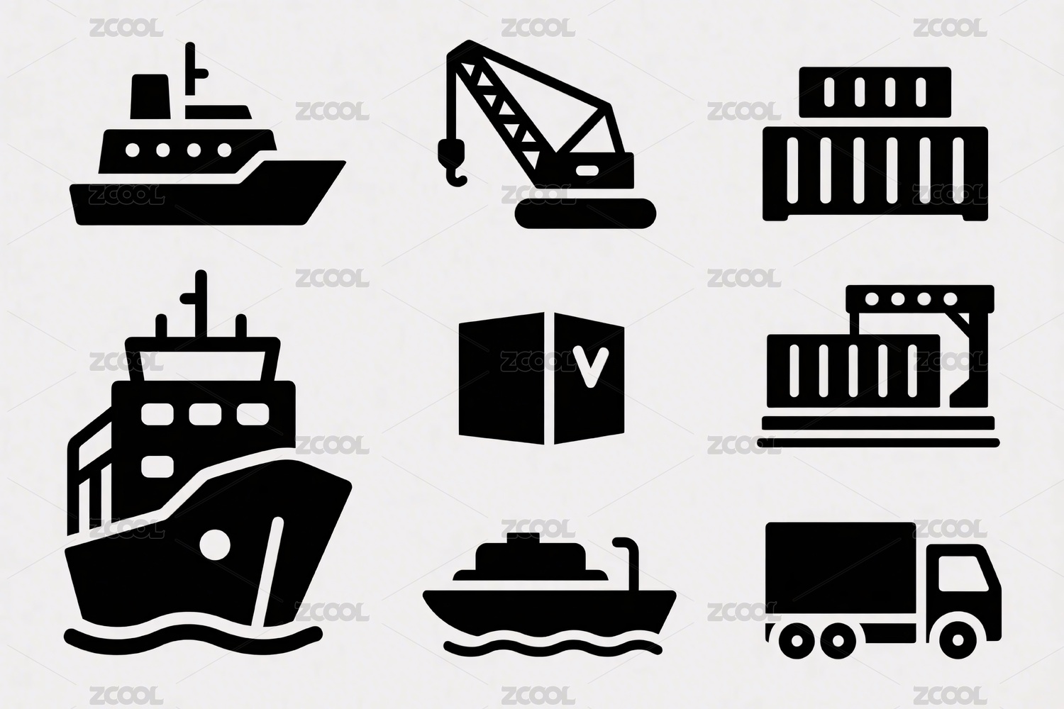 起重机,货车,集装箱,图标,运输,物流,画面元素,插画,简洁,黑色