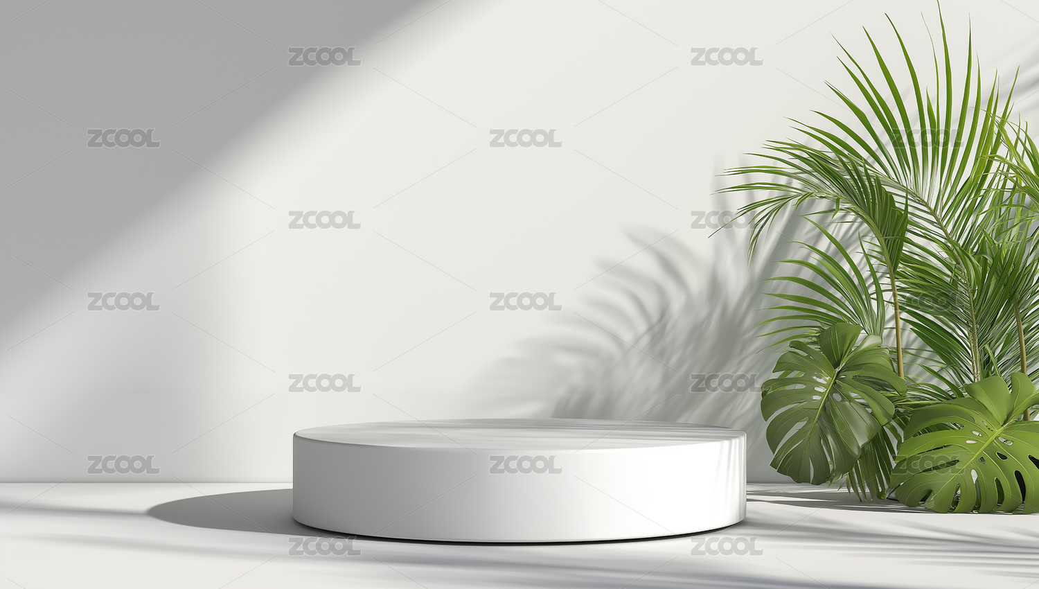 绿色背景下的棕榈叶和白色背景的特写镜头