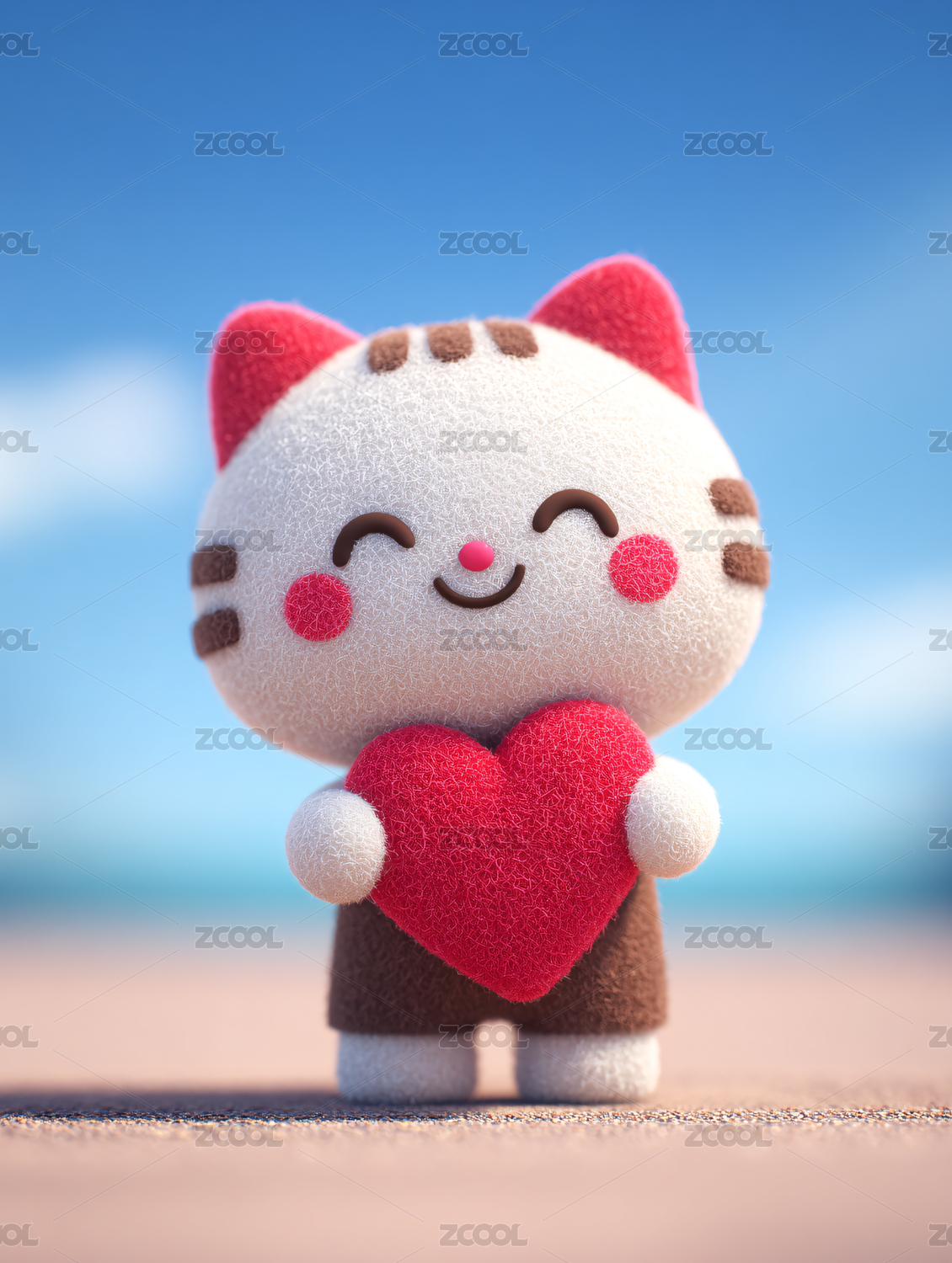 猫咪,爱心,毛绒玩具,可爱,萌宠,微笑,治愈,卡通,玩具,浪漫