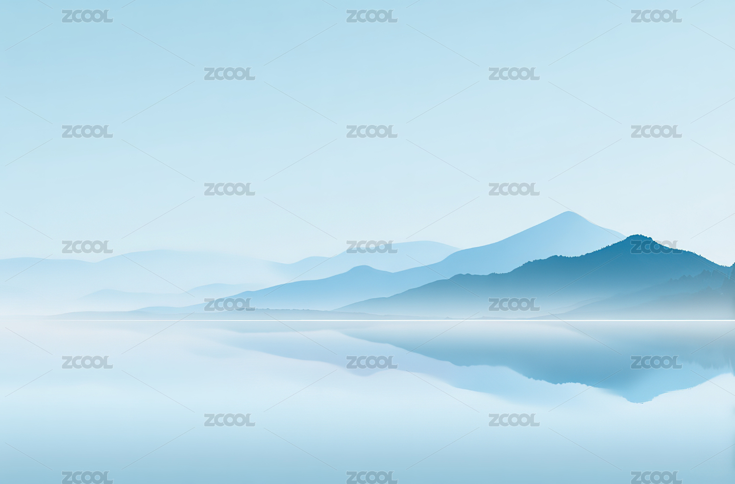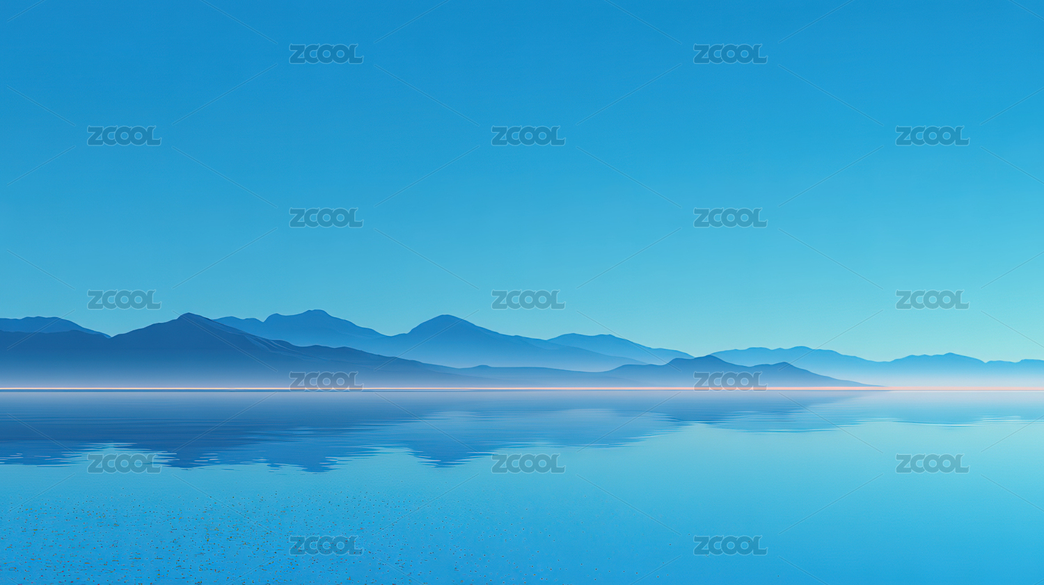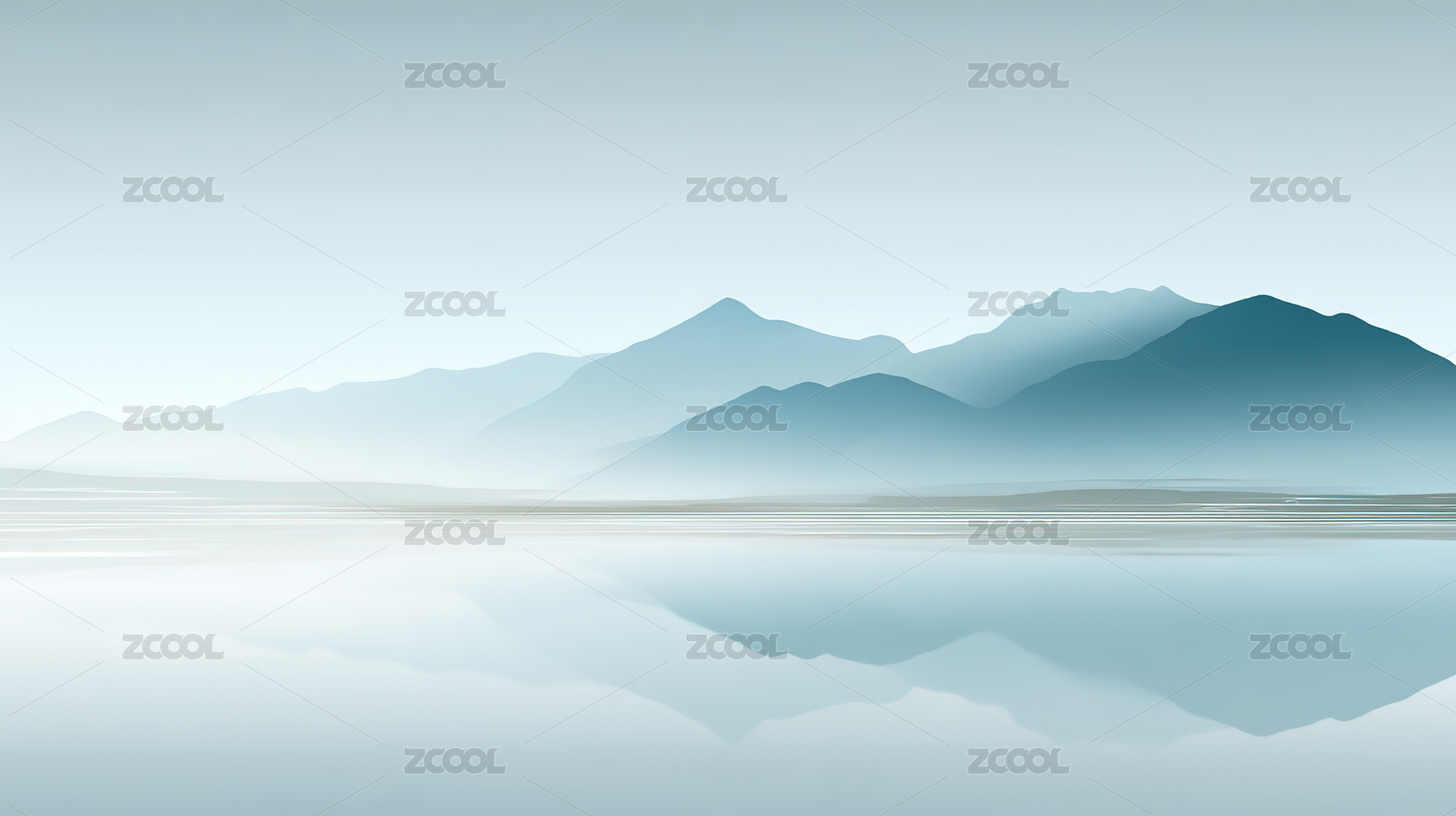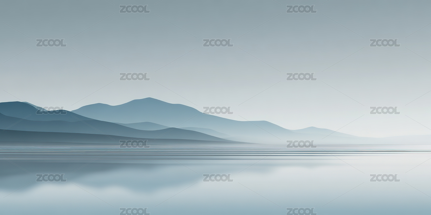 唯美简约扁平风山脉和湖面倒影