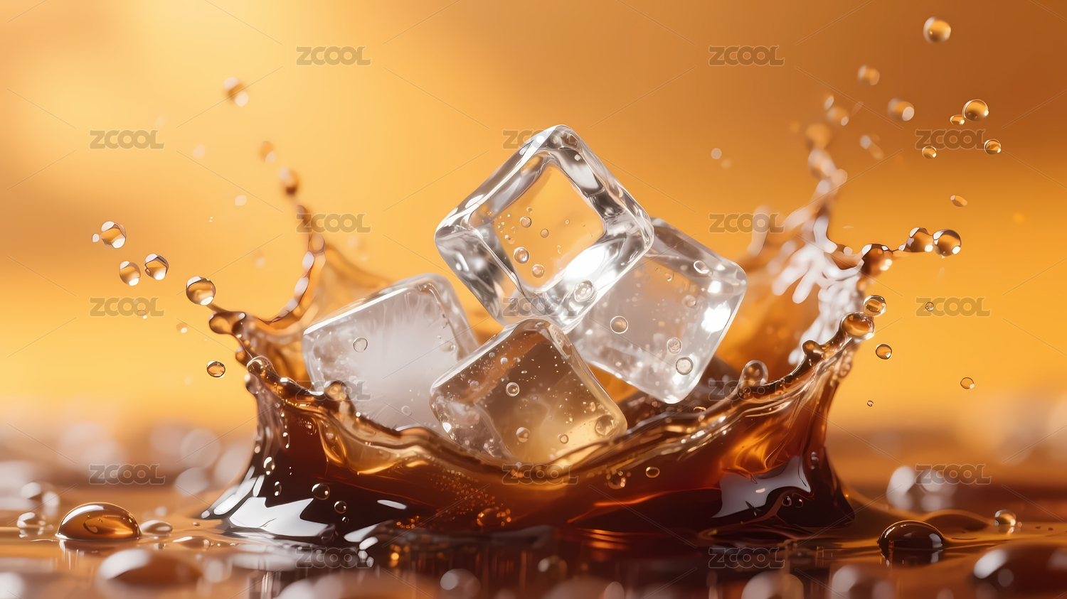 橙黄色背景透明冰块