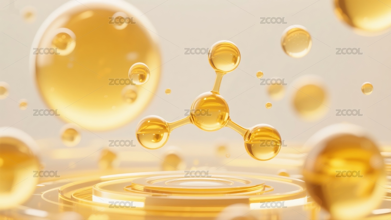 化妆品保湿水分子精华液体气泡背景3d渲染
