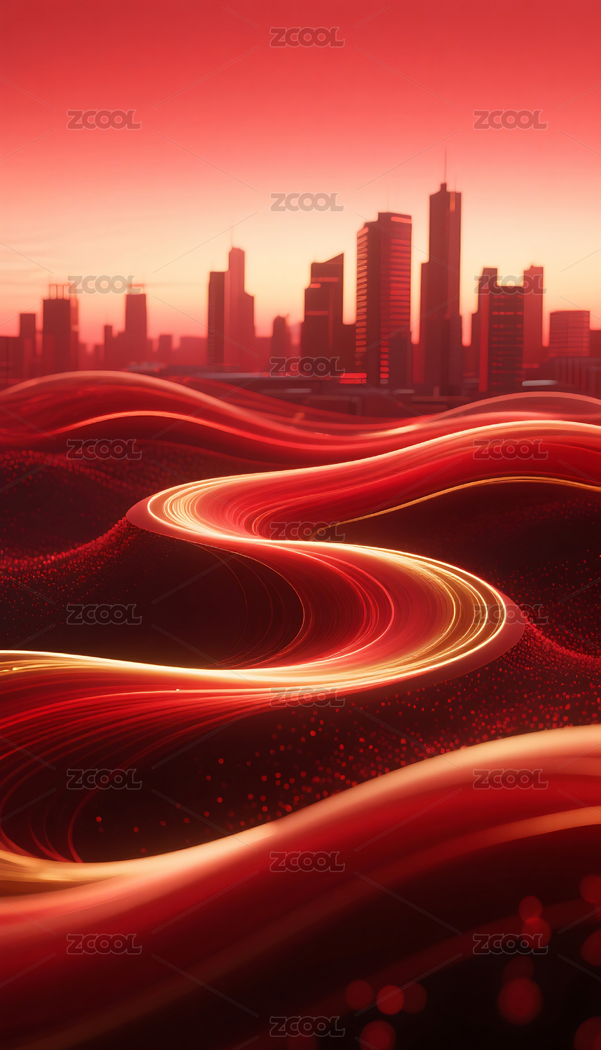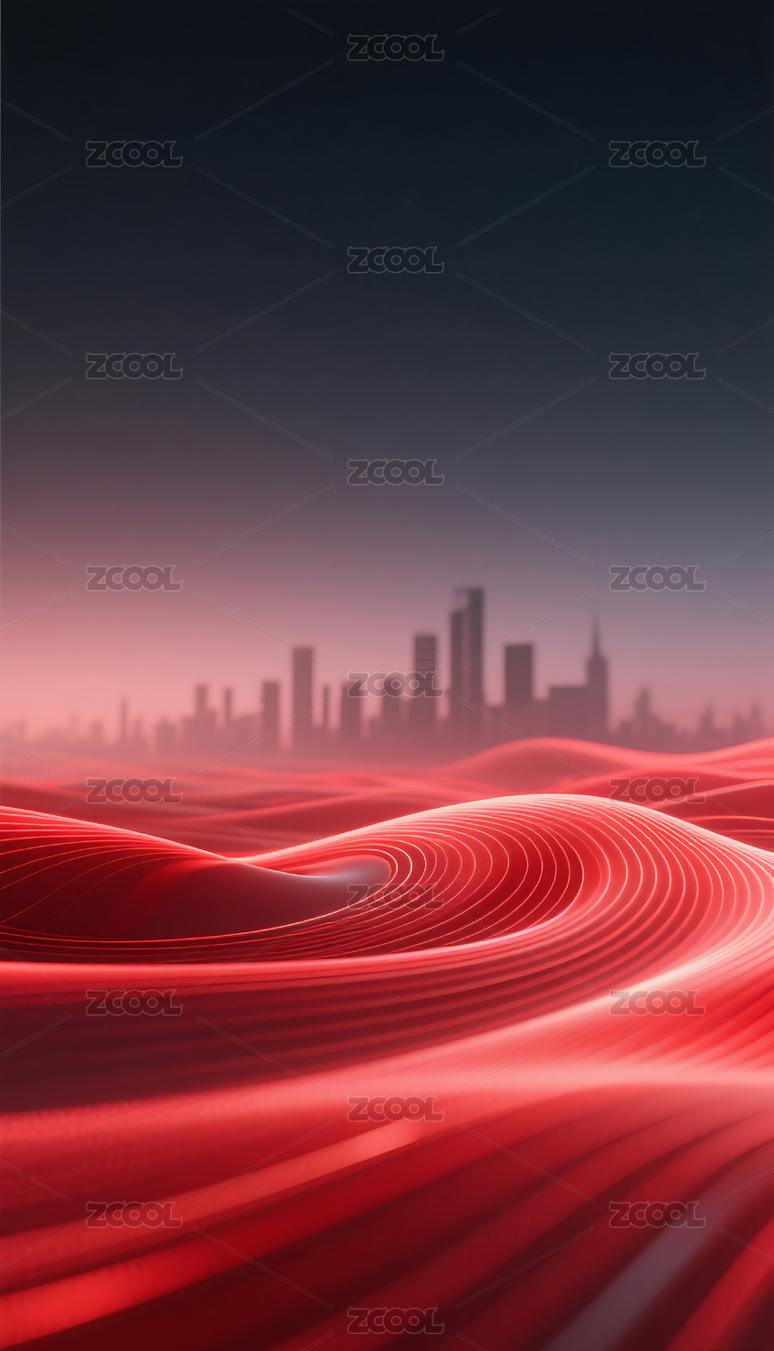 抽象流体流动深邃红色城市建筑背景