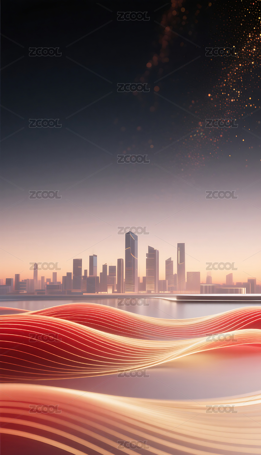 红金色流动城市建筑主视觉背景