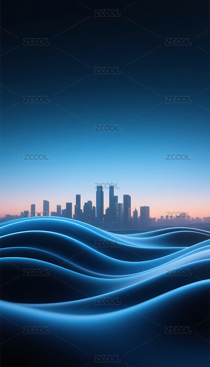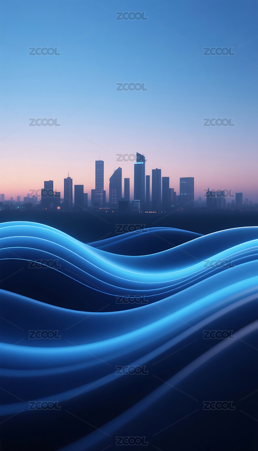 蓝色商务科技流动城市建筑主视觉背景
