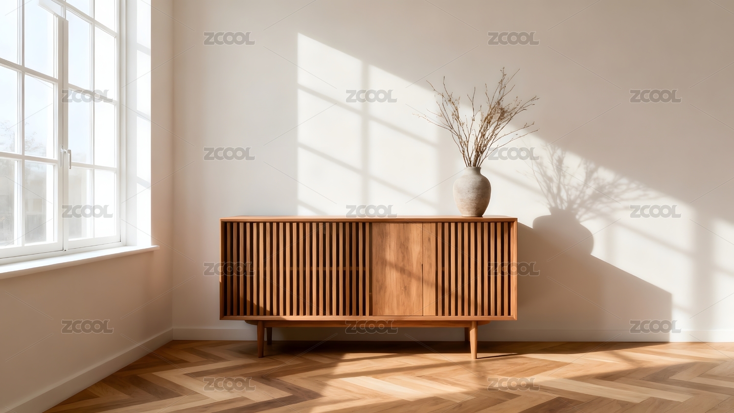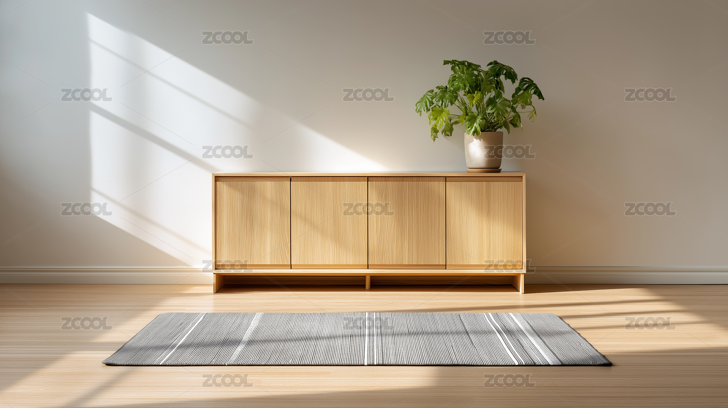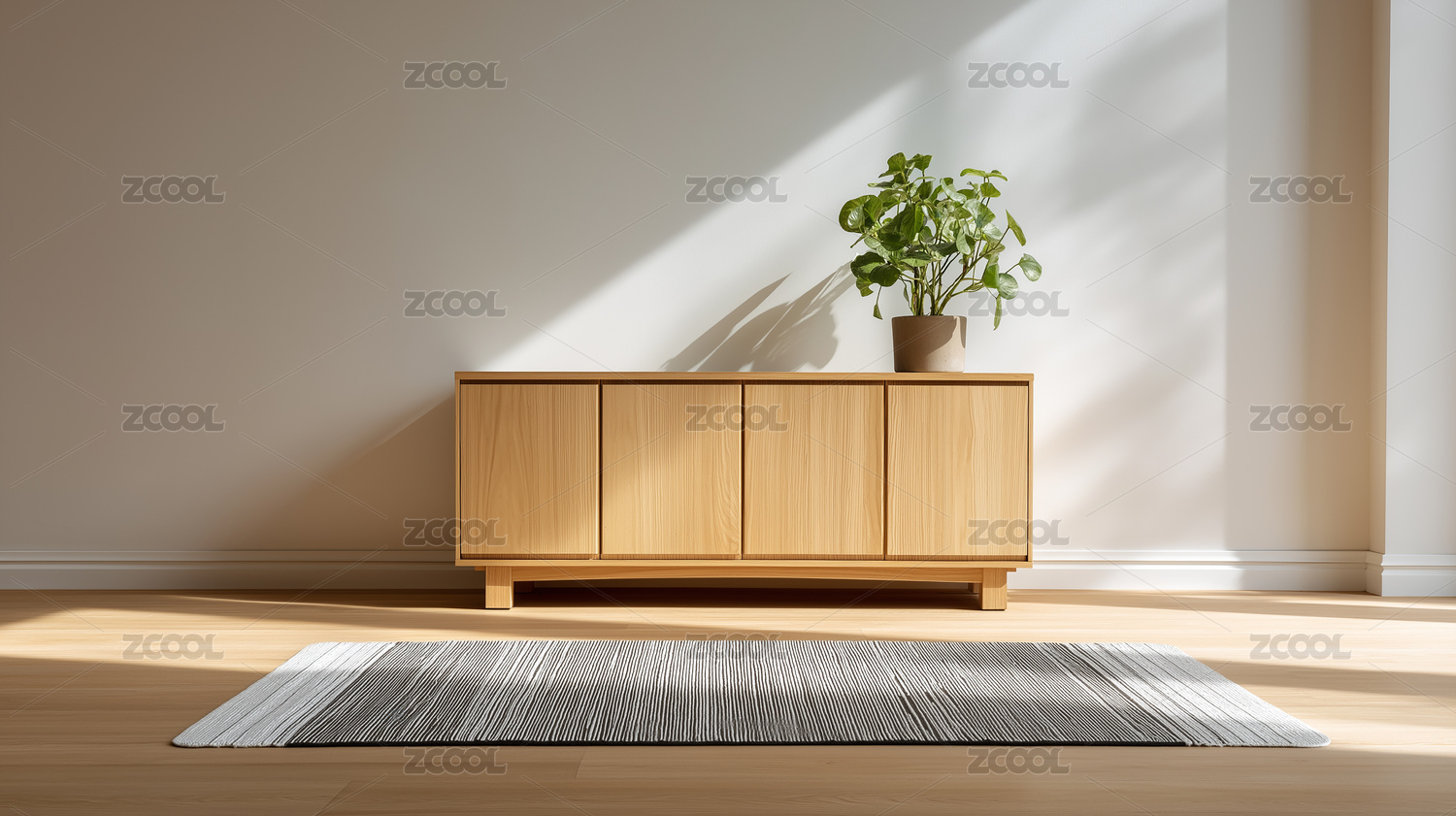 室内,简约,木柜,绿植,阳光,光影,墙面,地板,地毯,原木