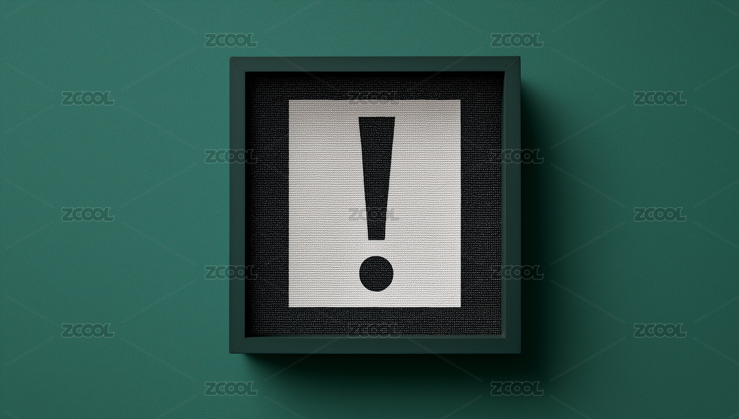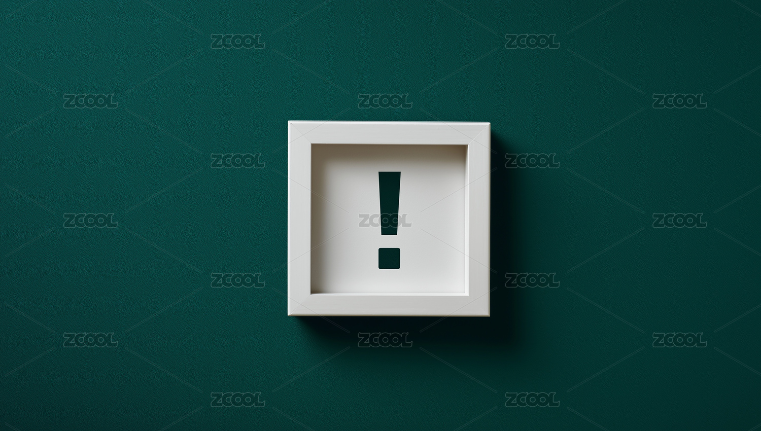 绿墙白色方框内嵌黑色感叹号符号