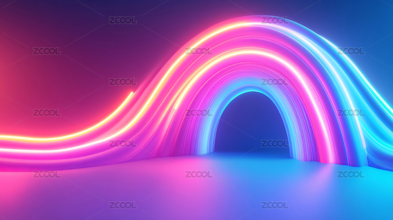 抽象霓虹灯发光几何线条3D渲染商务背景