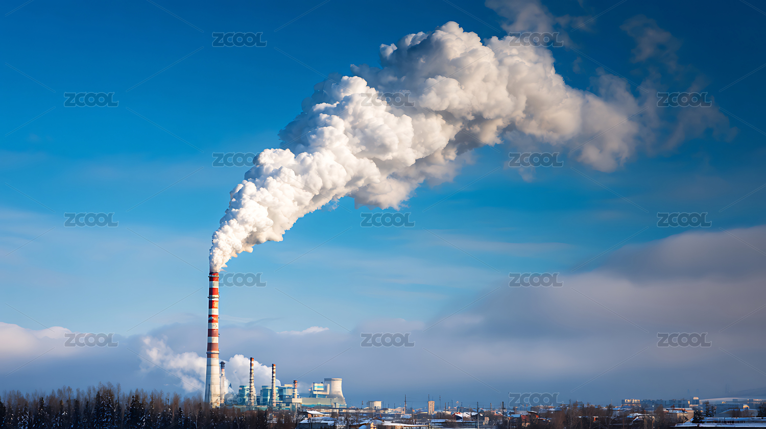 发电站工厂烟囱里排出的白烟