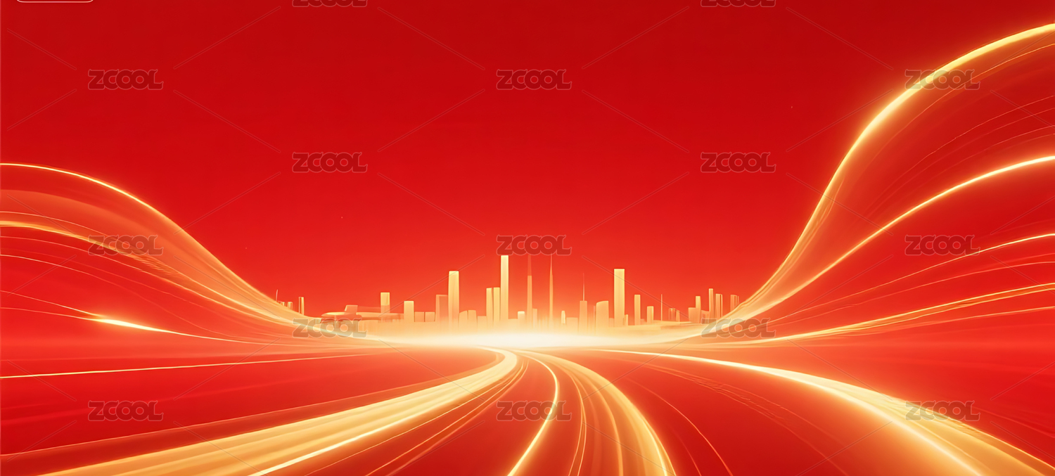 红金色流动光效城市建筑主视觉背景