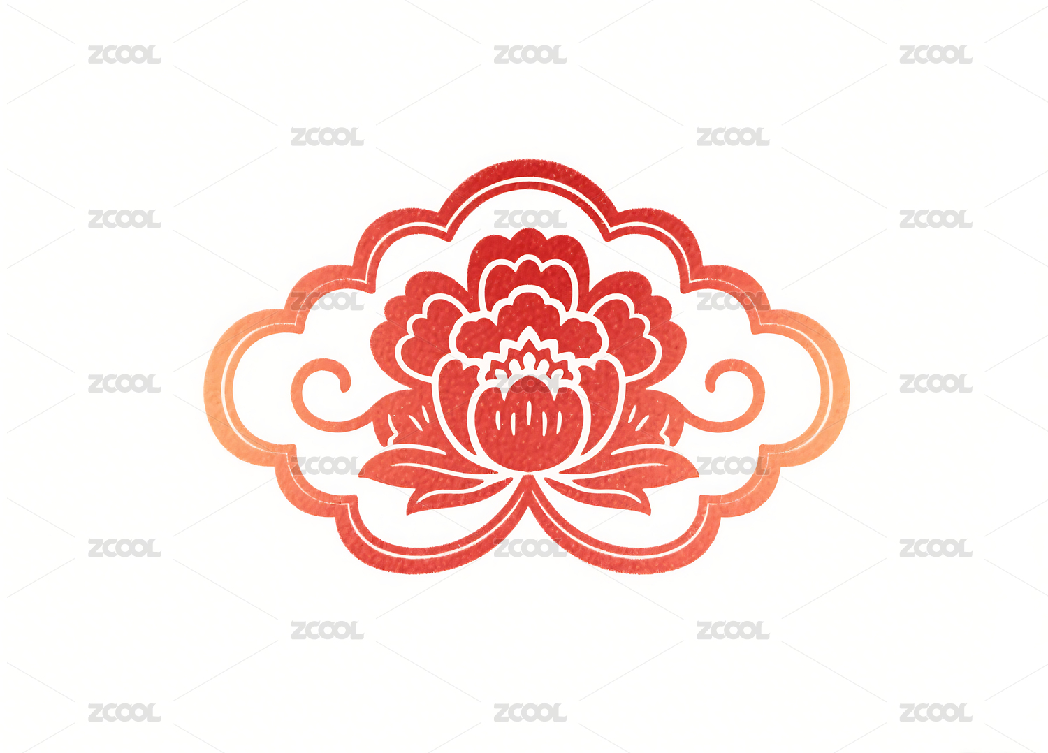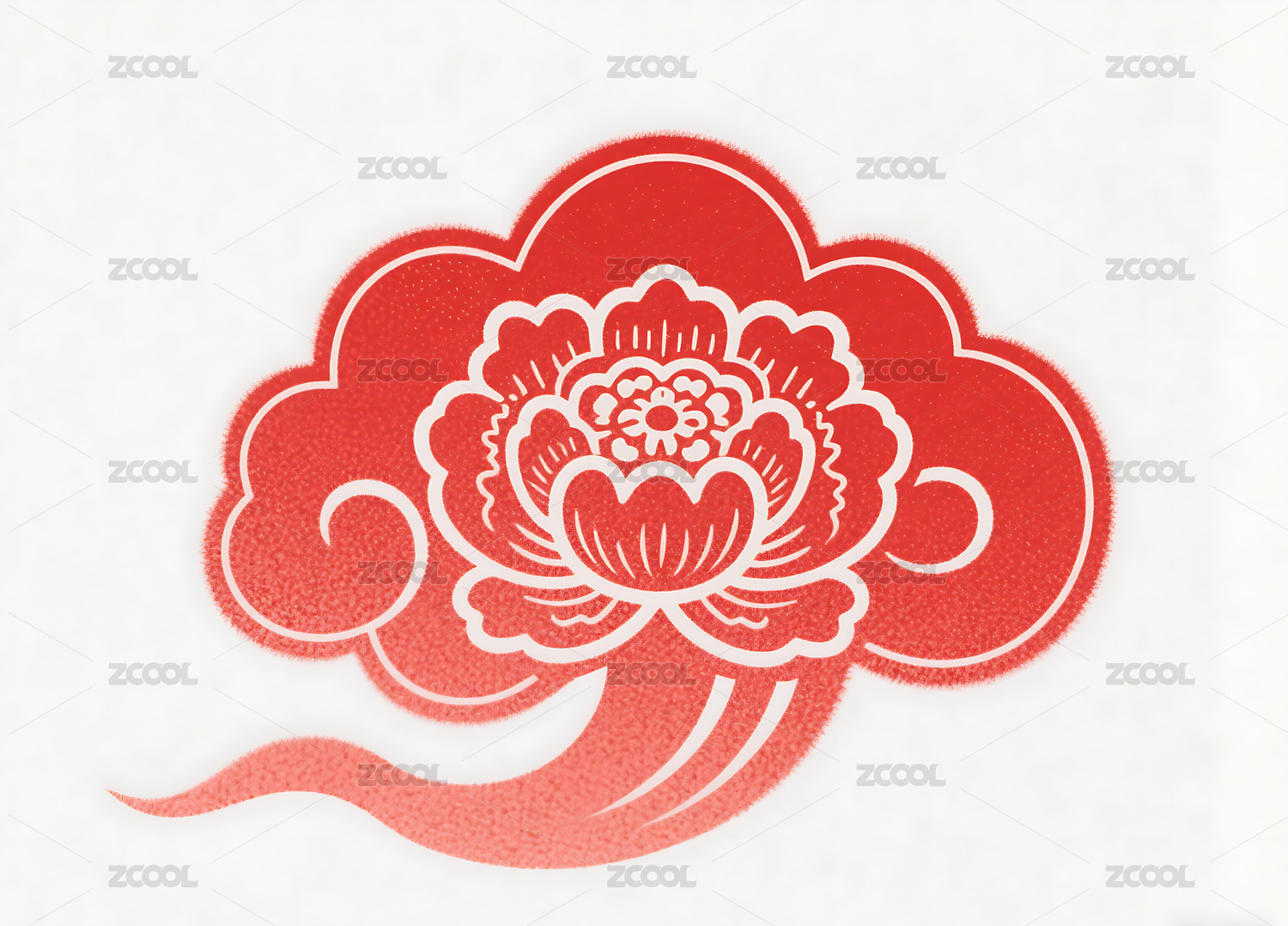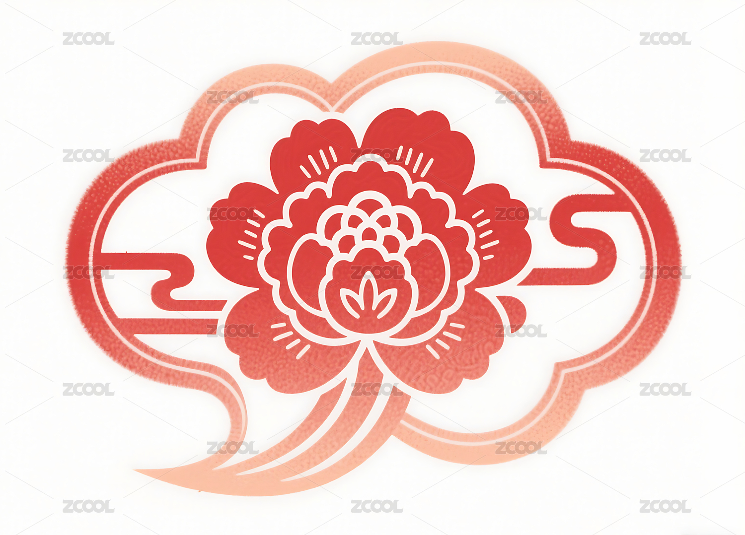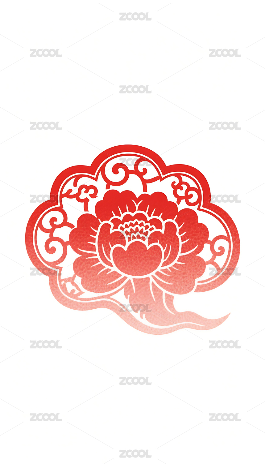 红色花朵祥云剪纸图案