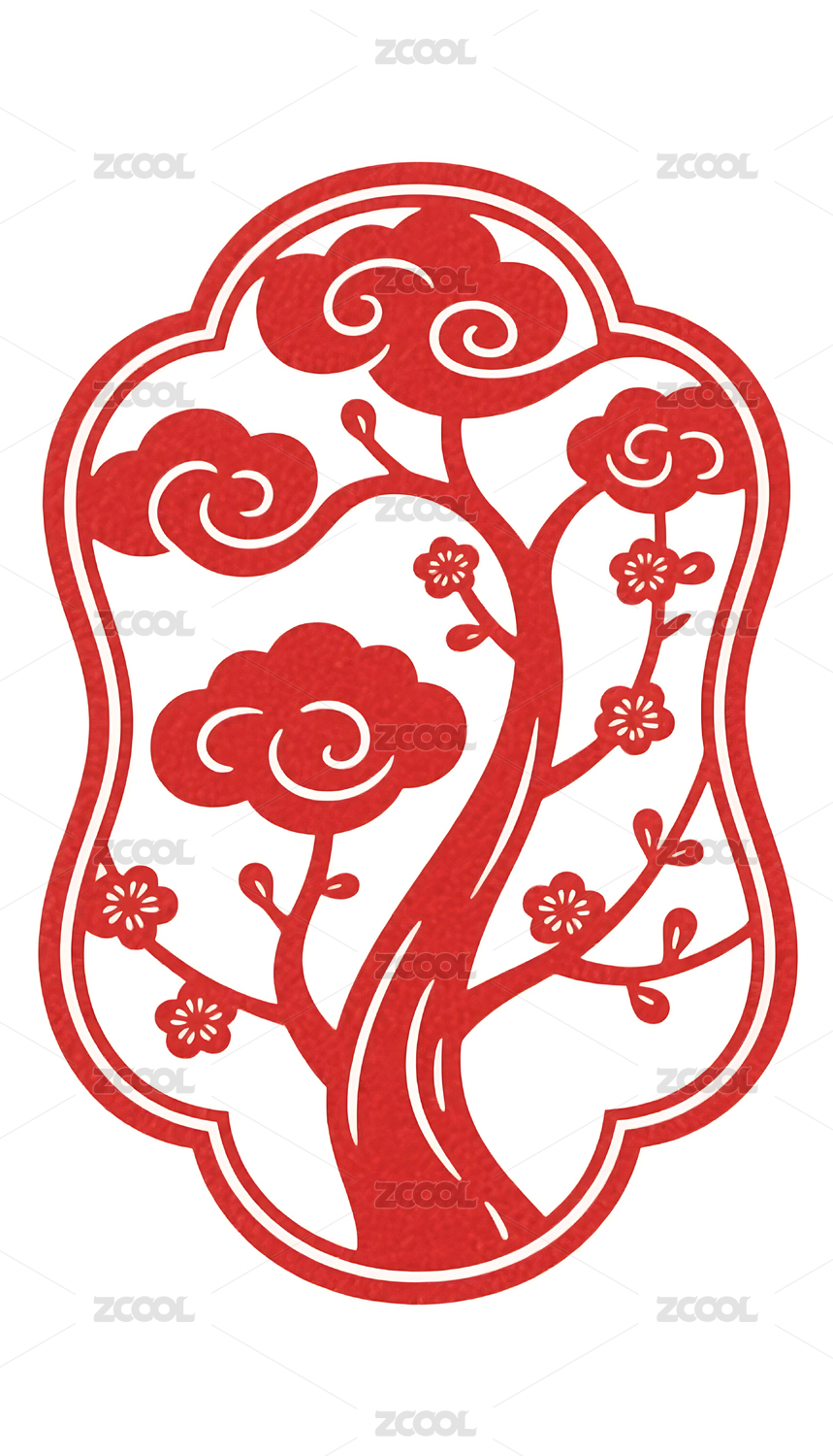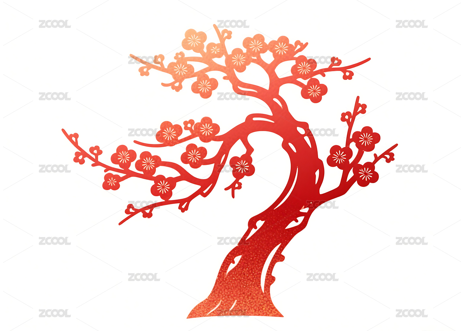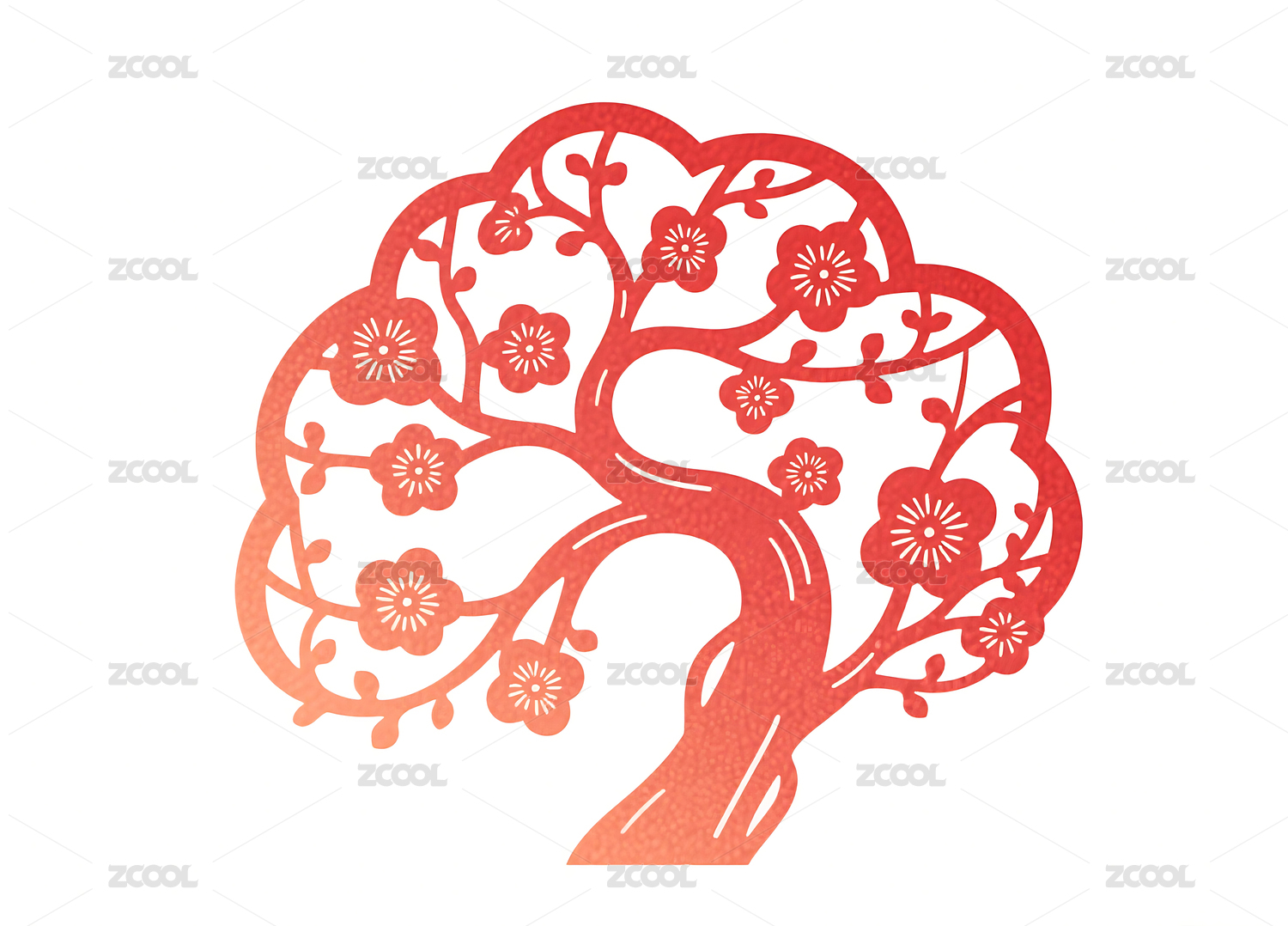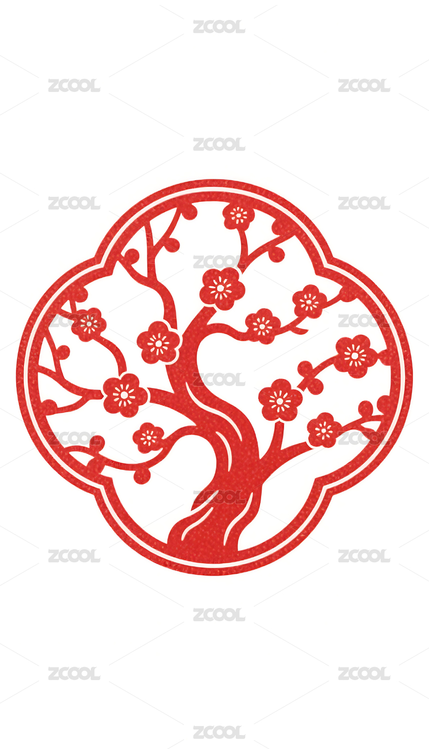 红色梅花树剪纸图案