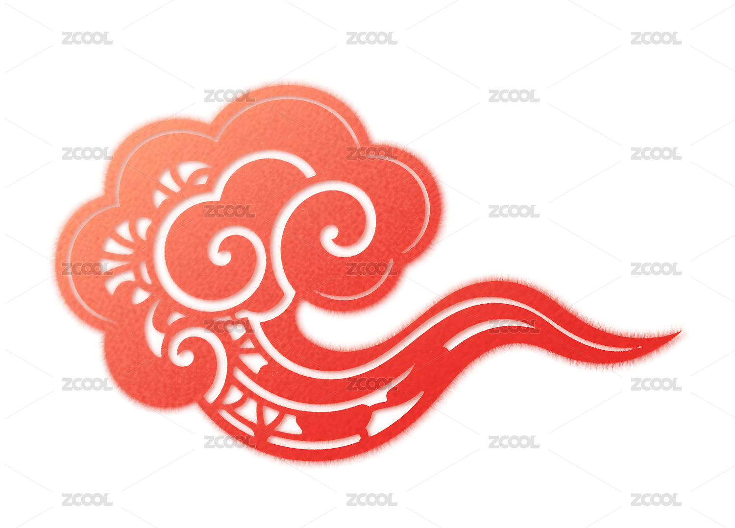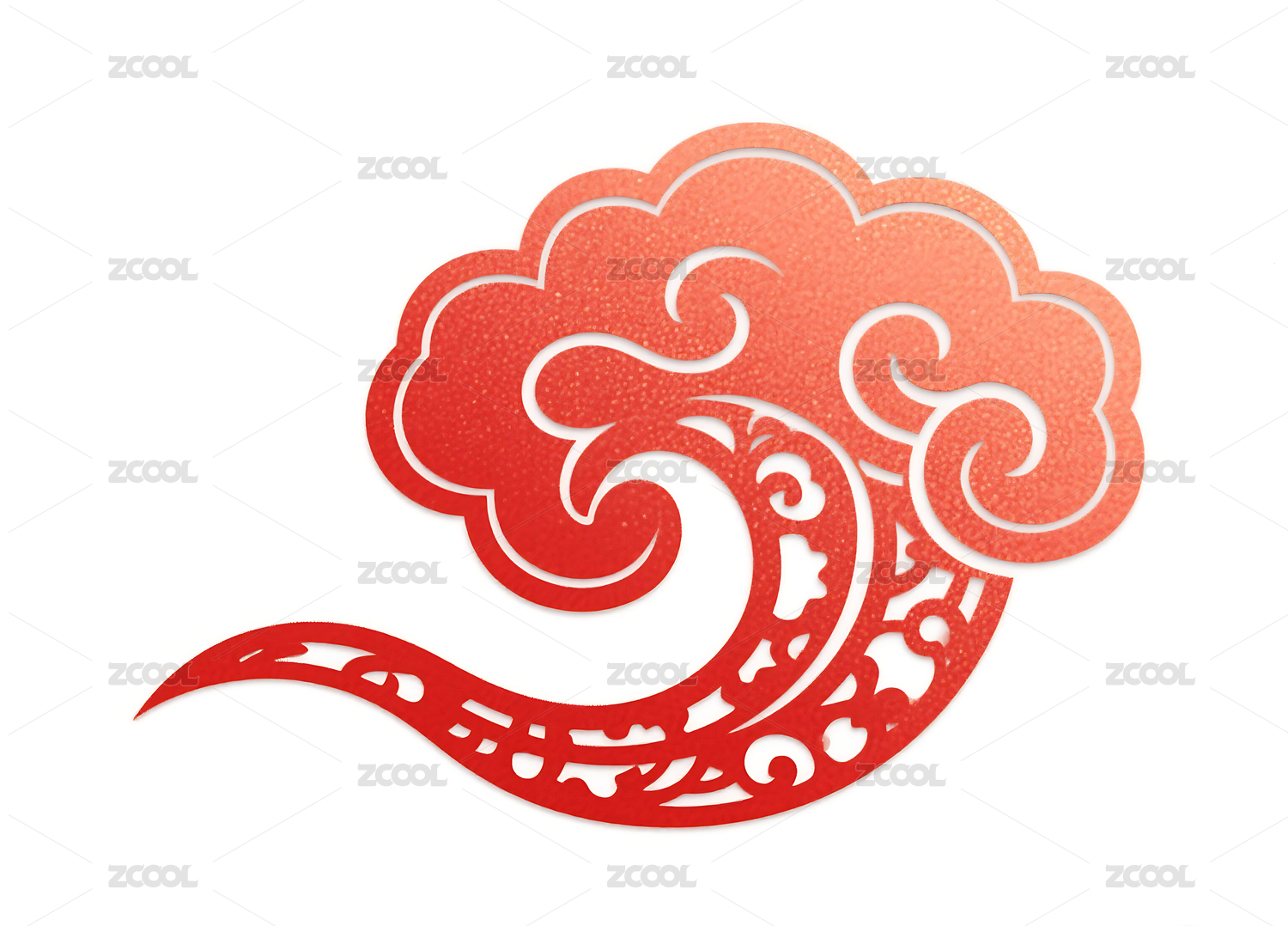 红色传统祥云图案剪纸