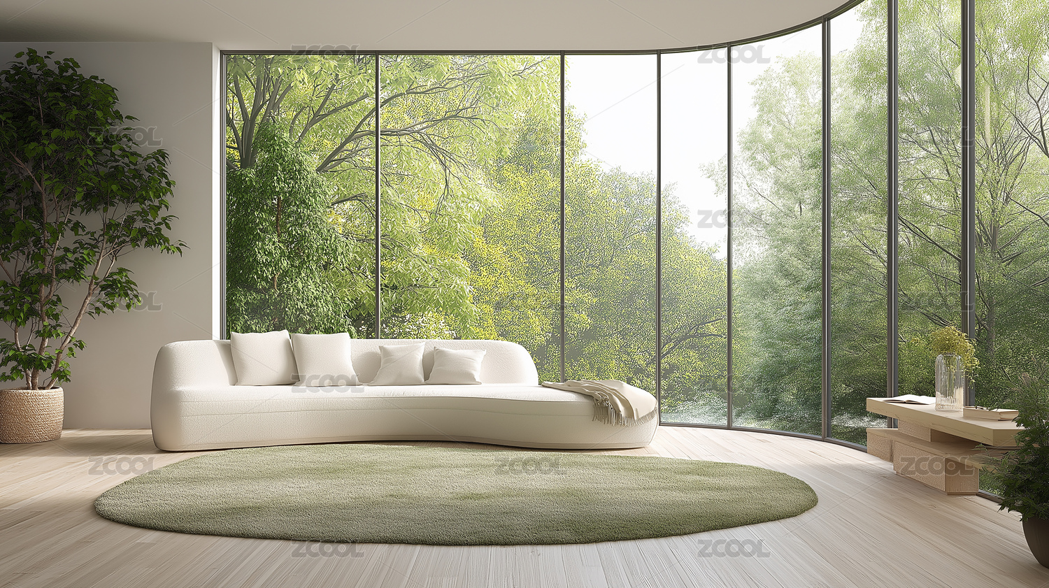 弧形窗客厅连通自然绿意空间