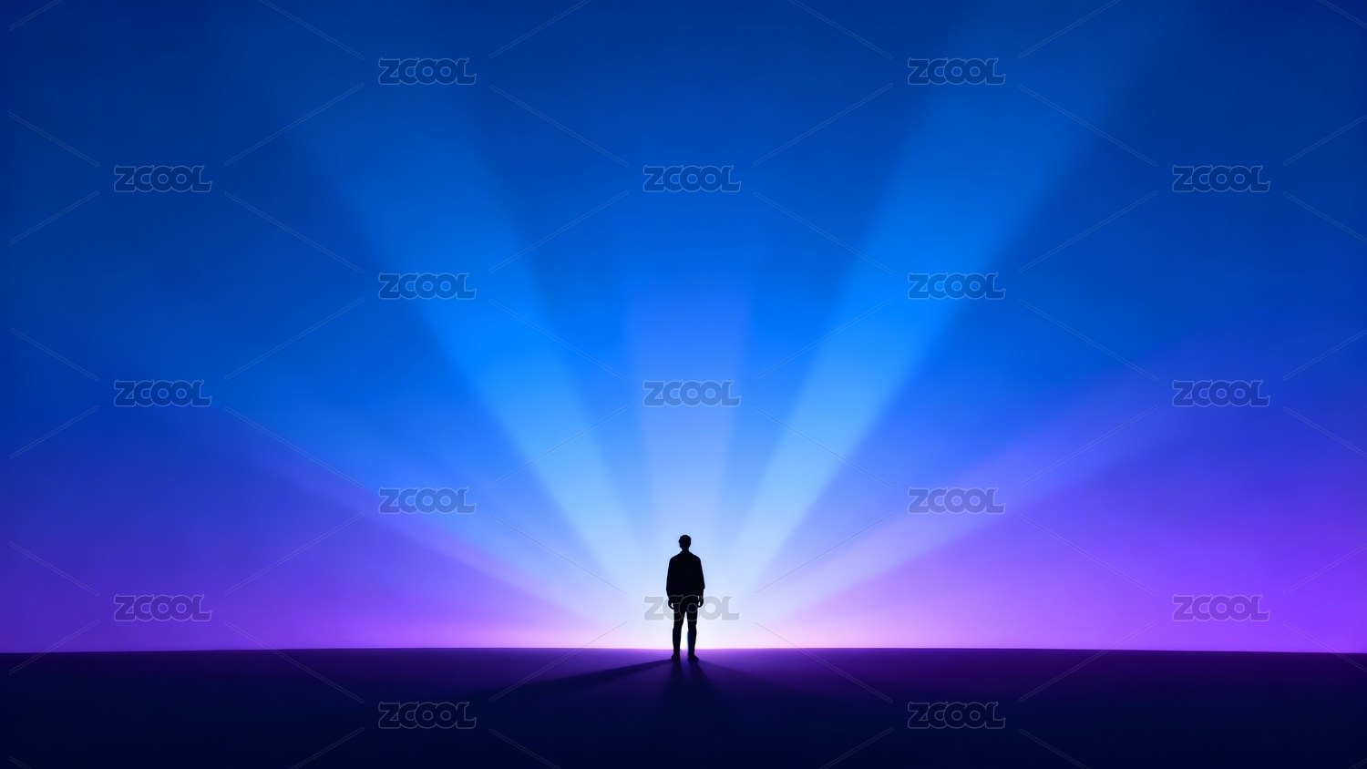 孤独身影立于光束交汇之地