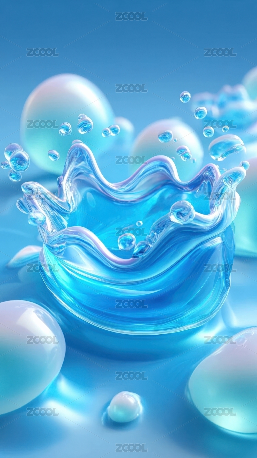 气泡,水滴,蓝色,透明,光影,流动,水下,纯净,清澈,水波