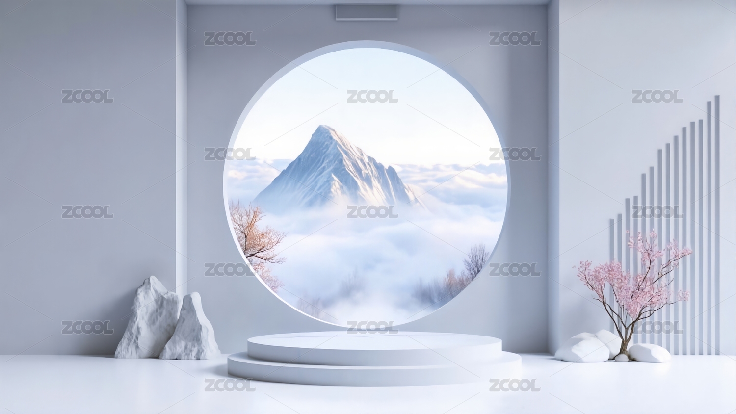 雪山背景下的3D极简现代国风白色产品展台