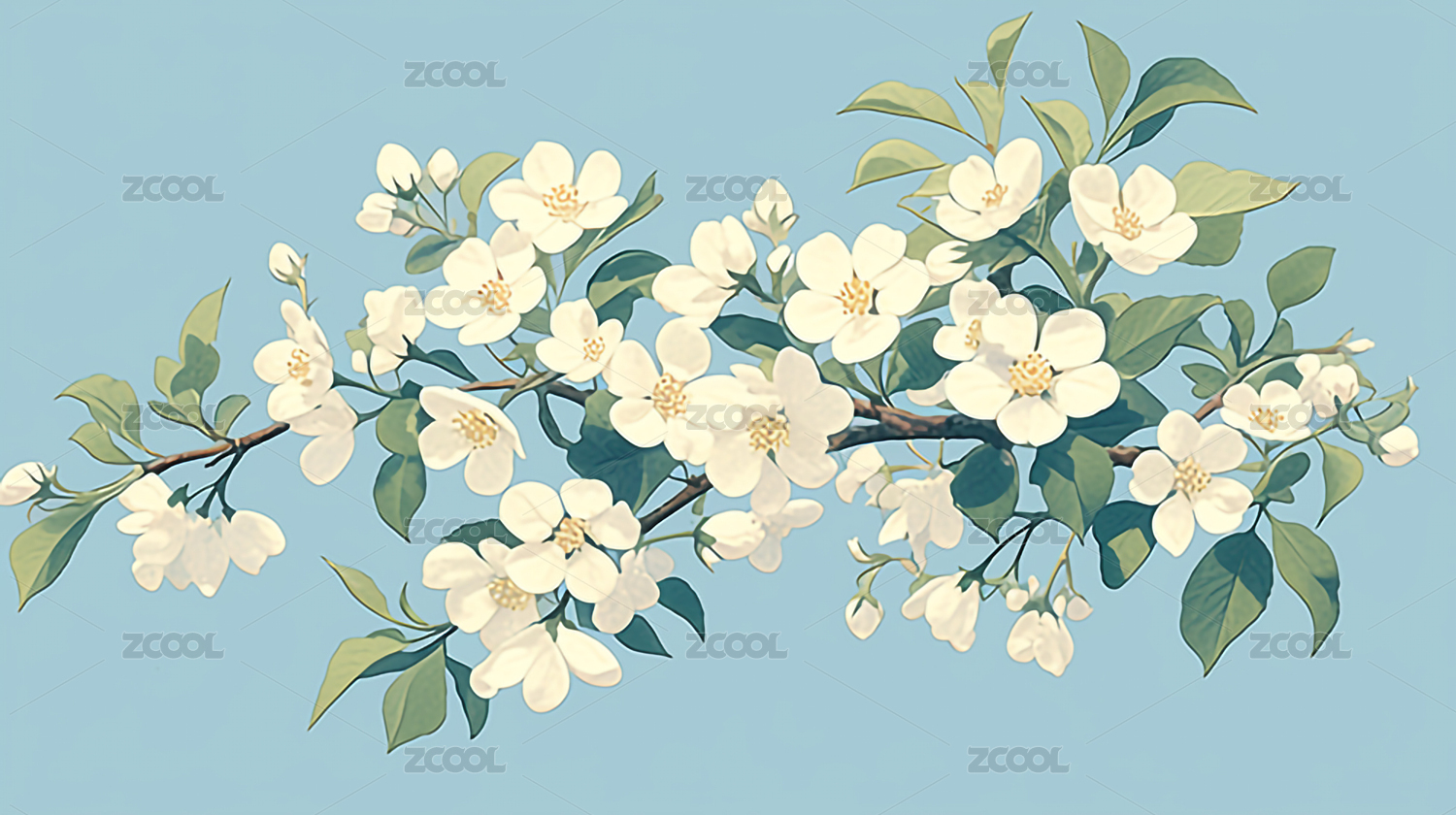 绿叶,白花,清新,自然,花朵,枝条,绿色,植物,背景