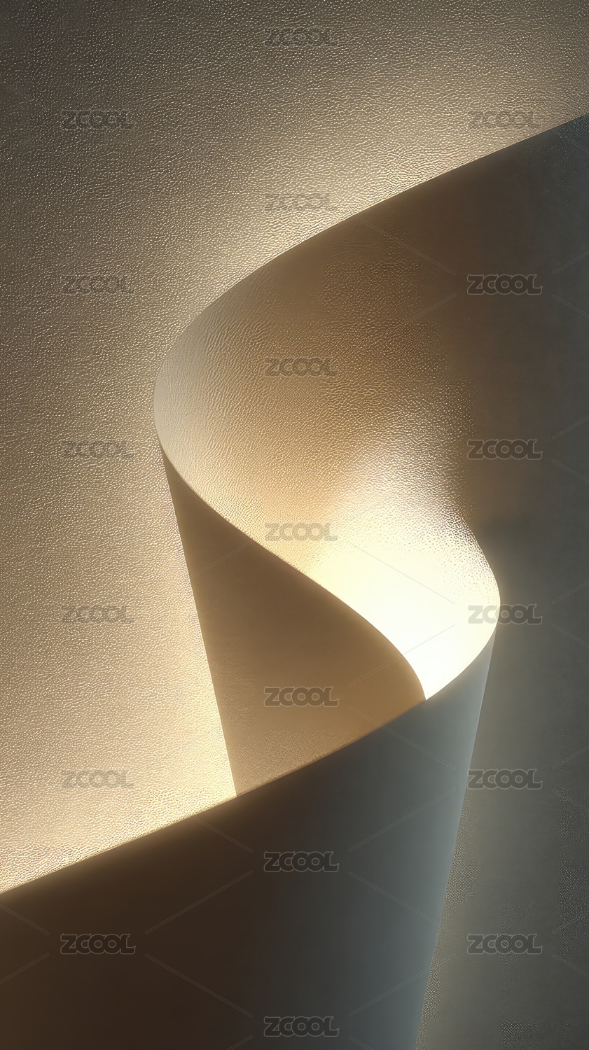 纸张卷曲光影艺术柔和线条引人入胜