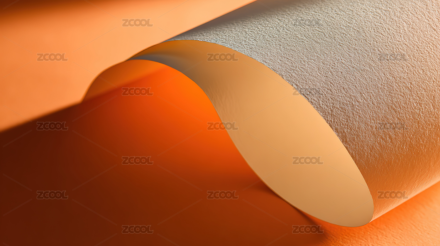 棕色纸张卷曲的特写镜头呈现抽象的流动感