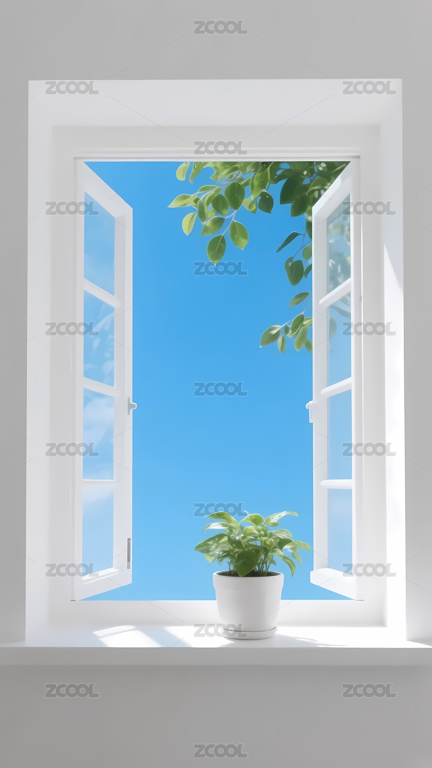 打开的窗户蓝天