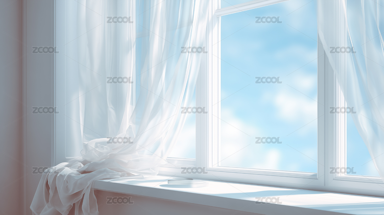 明亮通透窗帘微风房间