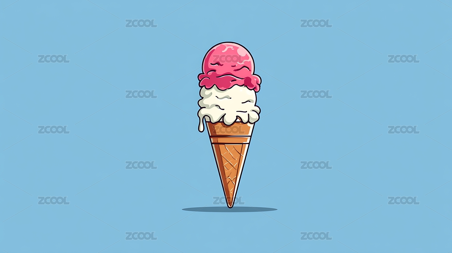 冰淇淋,甜筒,冰凉,美味,诱人,融化,艺术,黄色,夏日,可爱
