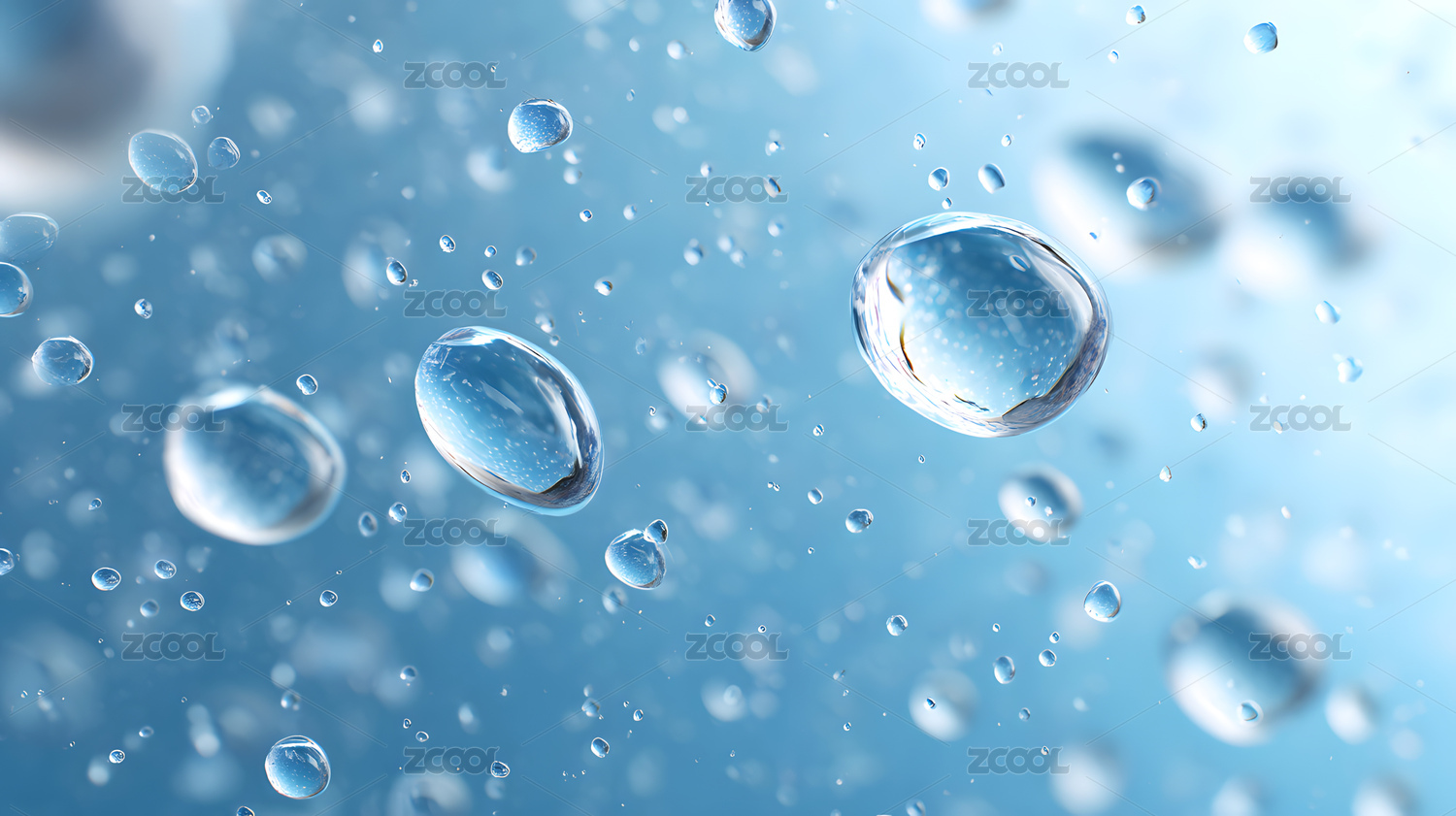 水珠悬浮蓝色背景
