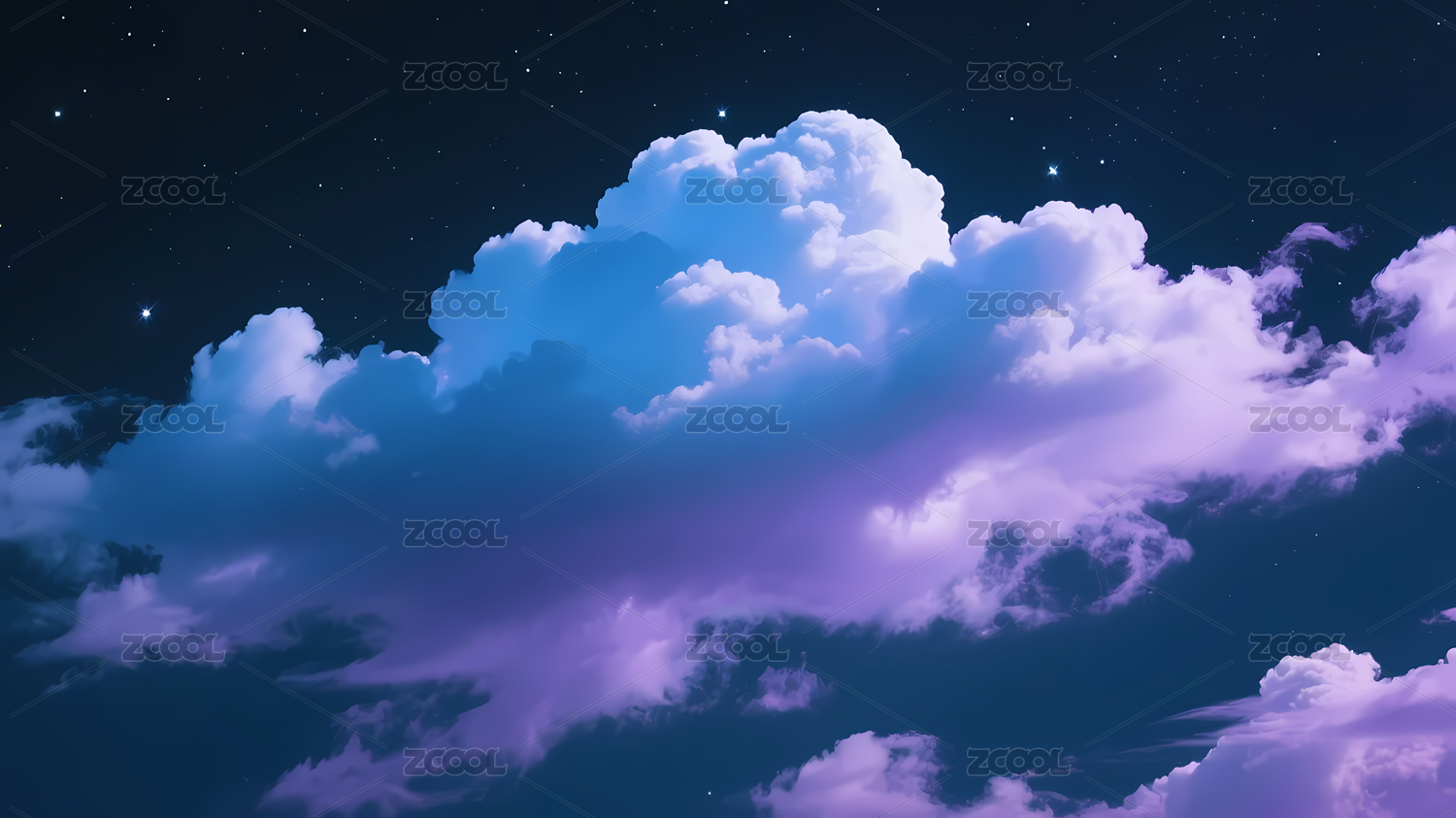 深蓝紫云夜空星星点