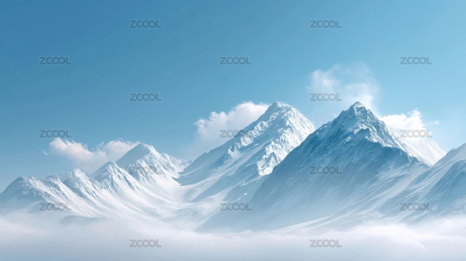 天空,雪山,山峰,寒冷,壮丽,蓝色,宁静,纯净,大气,云雾