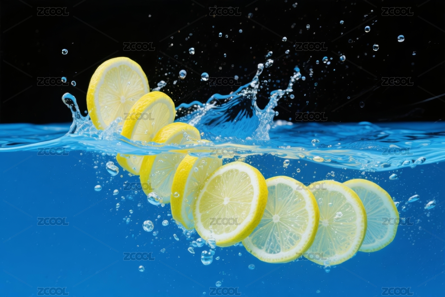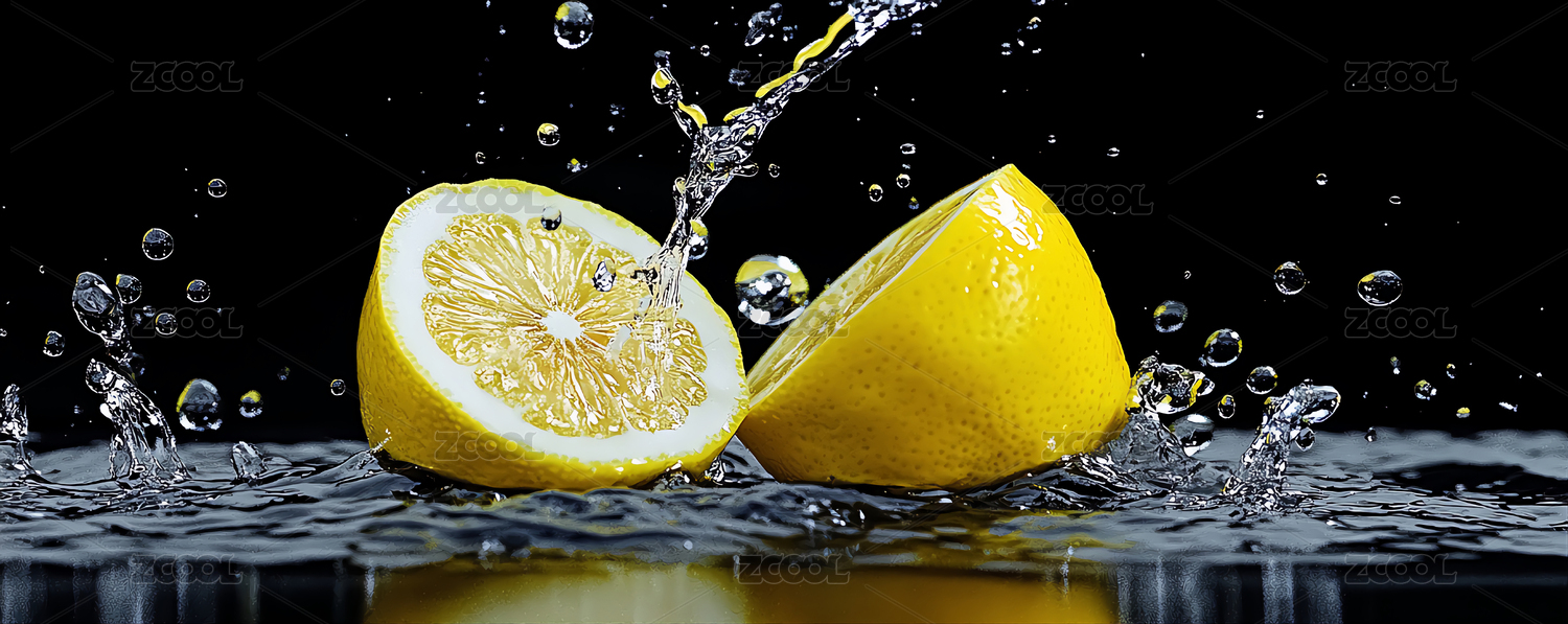 柠檬,黄色,水花,水珠,飞溅,特效,黑色,背景,3D,三维