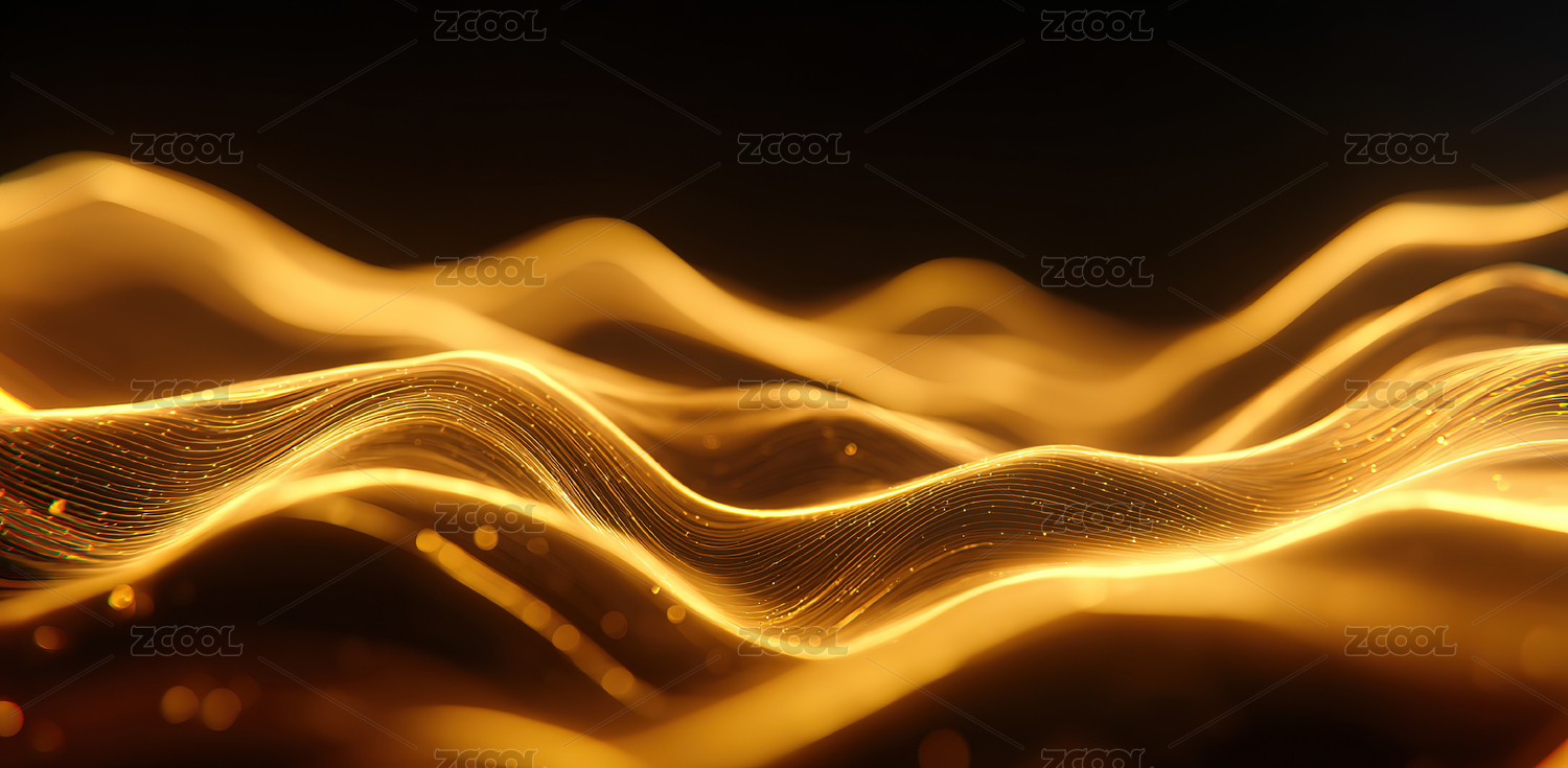 金色波浪的抽象光影效果